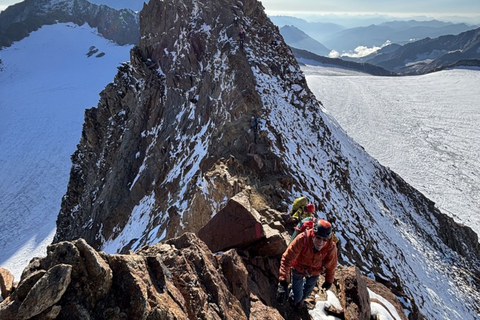 (ty) "Eine rundum lohnende und abwechslungsreiche Hochtour mit allem, was die Stubaier Alpen zu bieten haben", so das Fazit der beiden Touren-Leiter Christoph Klaus und Florian Klingseisen von der DAV-Sektion Pfaffenhofen-Asch. "Ein echtes Gemeinschafts-Erlebnis in beeindruckender Kulisse." Die Überschreitung des Wilden Freiger (3416 Meter) und des Wilden Pfaff (3456 Meter) habe die Bergsteiger-Herzen höher schlagen lassen. "Vom Ausgangspunkt an der Dresdner Hütte führte der Weg über den teils aperen Gletscher zum ersten Gipfel, wo sich ein spektakulärer Blick auf die umliegenden Tiroler und Südtiroler Berge eröffnete", heißt es von der DAV-Sektion.