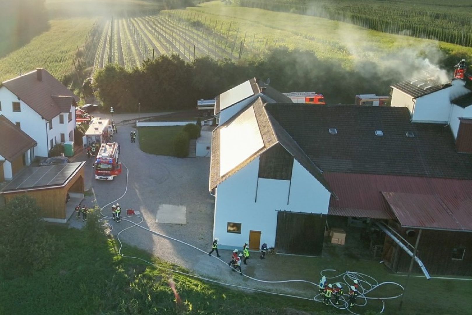 Laut Polizei befand sich der betroffene Landwirt bei der Ernte. Zu diesem Zeitpunkt sei frisch geernteter Hopfen in der Darre nachgefüllt worden. Wenige Minuten später, gegen 17.40 Uhr, sei festgestellt worden, dass Rauch aus den Lüftungs-Schlitzen am Dachstuhl gedrungen sei. Daraufhin sei die Feuerwehr verständigt worden. Von den Floriansjüngern habe der Brand zügig unter Kontrolle gebracht werden können. "Die Brand-Ursache ist momentan Gegenstand weiterer Ermittlungen", erklärte die Polizei am heutigen Vormittag. Neben Einsatzkräfte von mehreren Feuerwehren waren unter anderem die Kreisbrandinspektion und der Rettungsdienst angerückt.