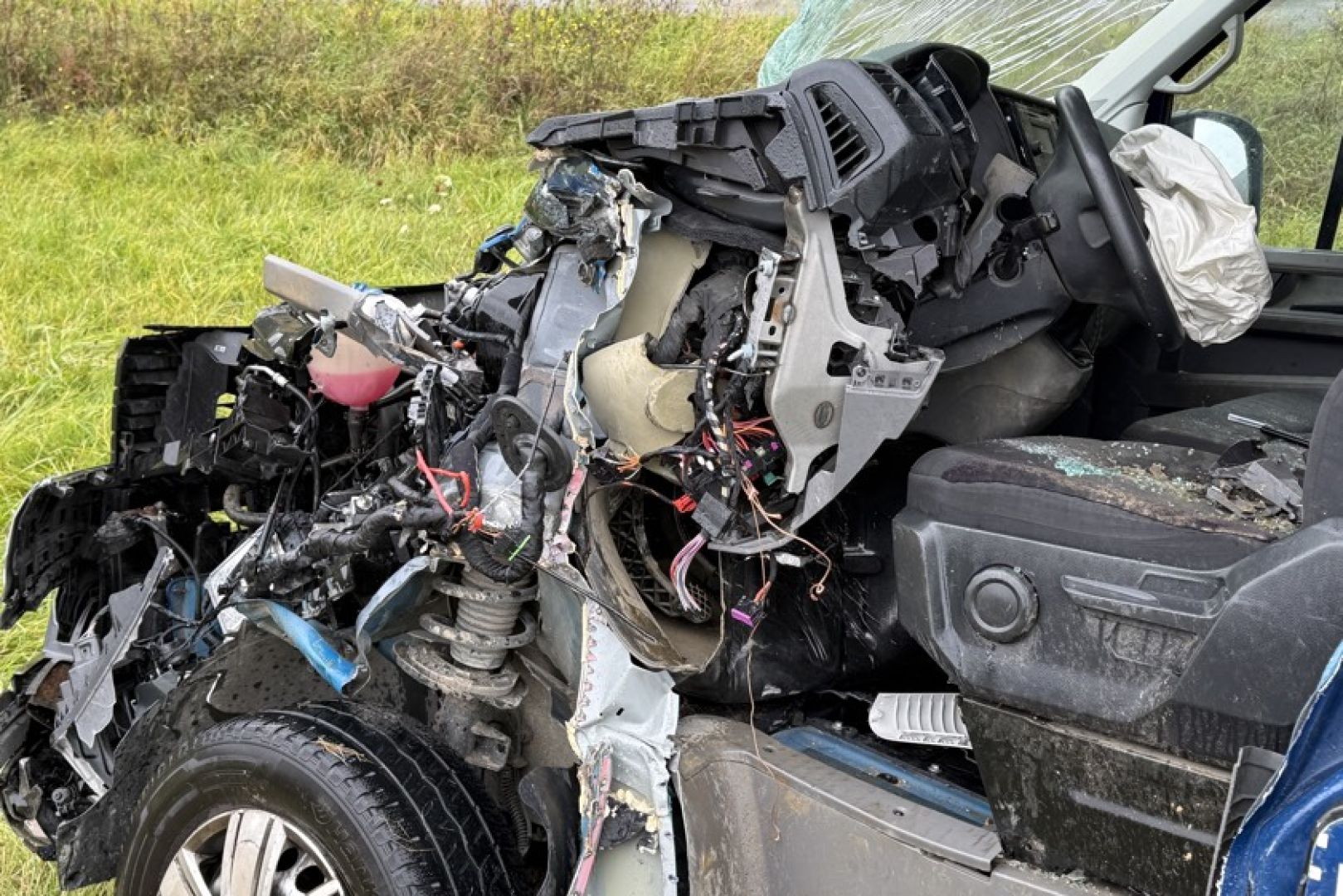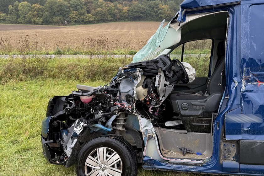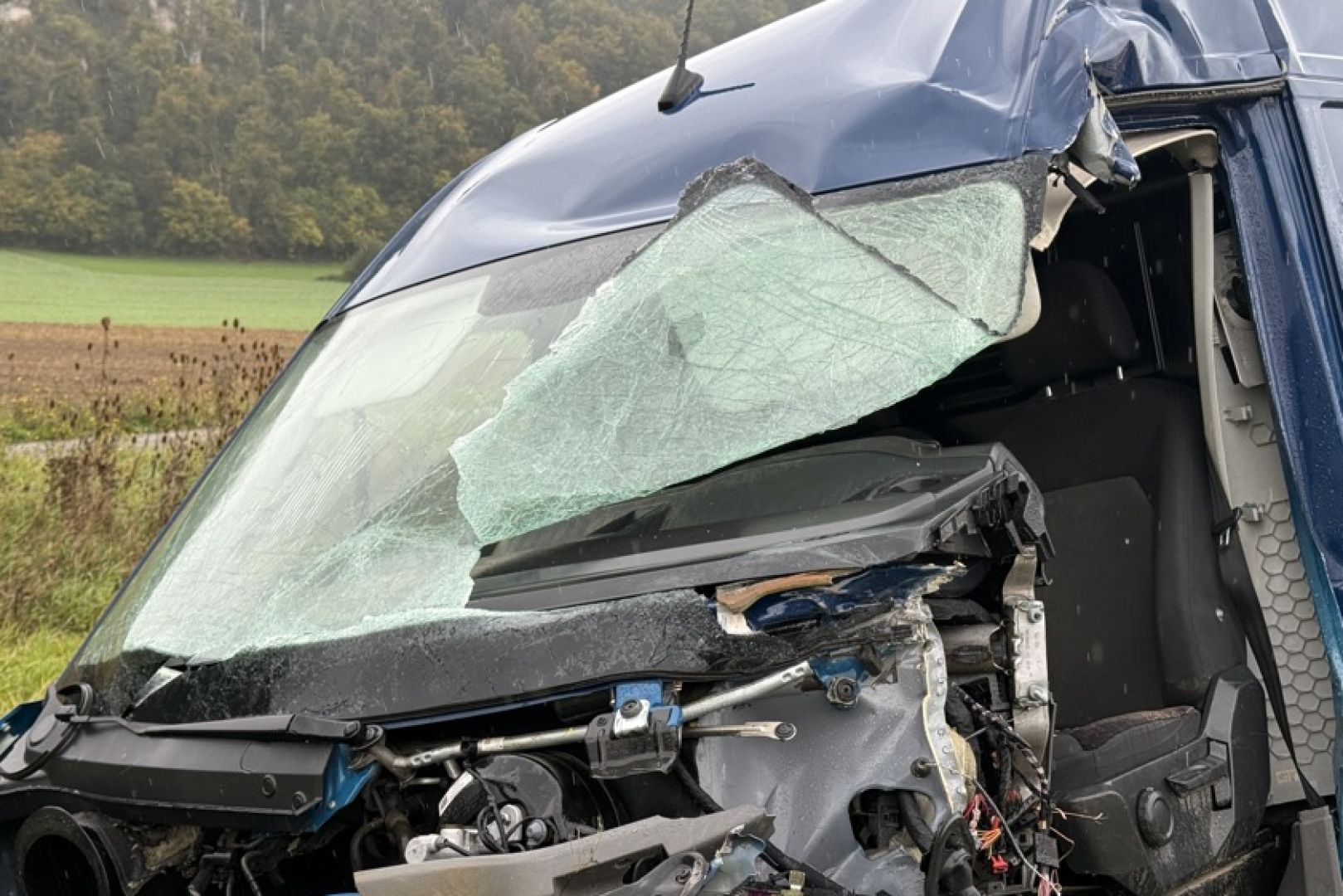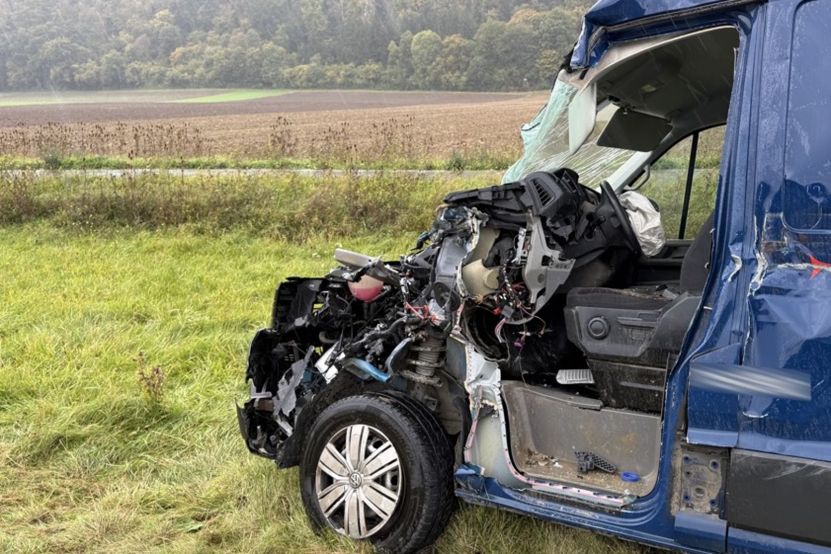 (ty) Offenbar viel Glück im Unglück hatte ein 43 Jahre alter Kleintransporter-Fahrer bei einem schweren Verkehrsunfall, der am gestrigen Nachmittag gegen 13.20 Uhr im Gemeinde-Bereich von Dollnstein (Kreis Eichstätt) geschehen ist. Wie die Polizei heute berichtet, war er mit seinem VW-Crafter auf der Staatsstraße 2047 unterwegs, während ihm ein ebenfalls 43-Jähriger mit seinem Sattelzug entgegenkam. Kurz vor Ried sei der Lkw-Auflieger – vermutlich aufgrund nicht angepasster Geschwindigkeit – in einer leichten Rechts-Kurve nach links ausgebrochen und knapp einen Meter auf die Gegenspur geraten. Der VW sei mit der linken Front gegen den Auflieger geprallt.