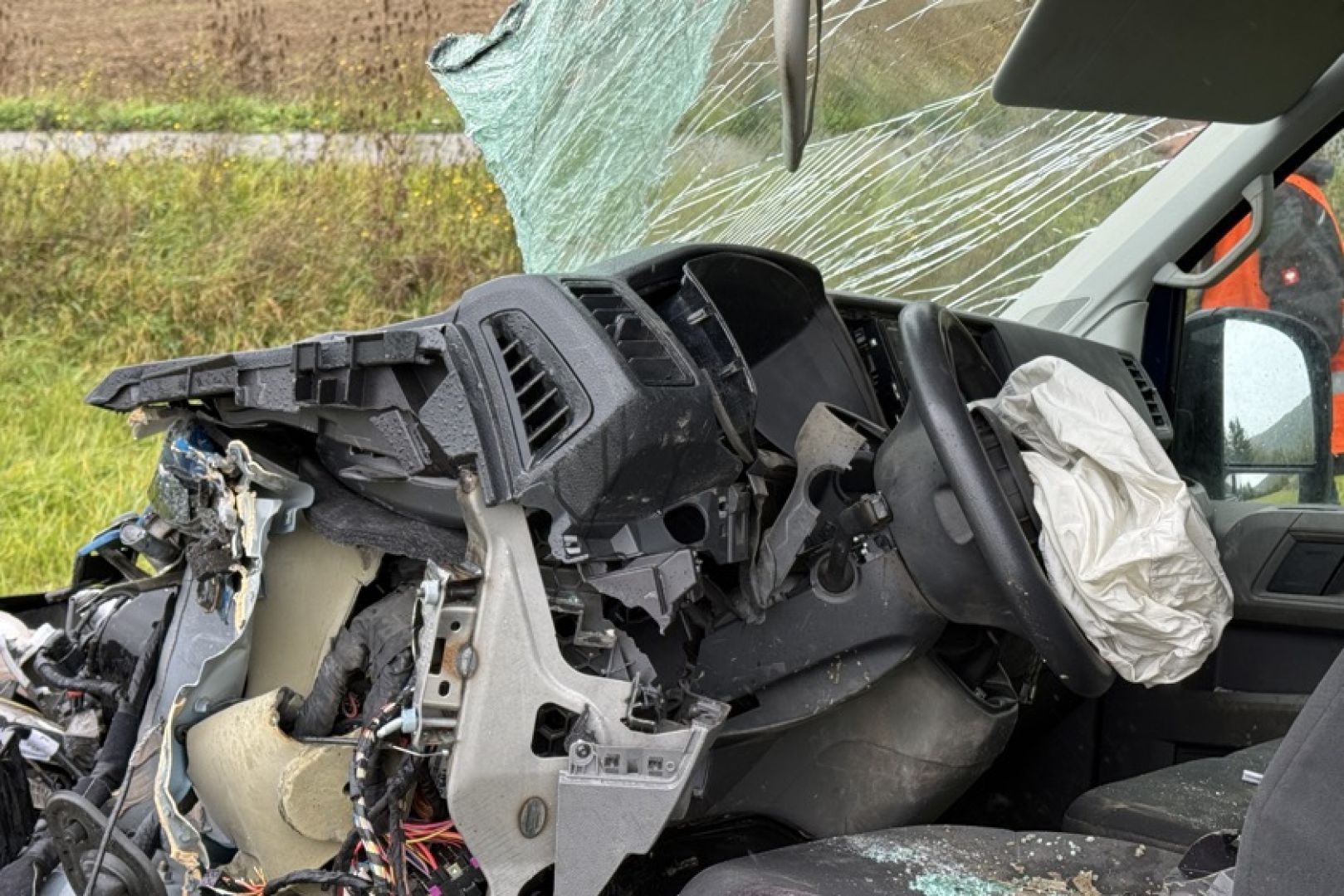43 Jahre alter Kleintransporter-Fahrer musste von der Feuerwehr befreit werden, hatte aber Glück im Unglück. Strafanzeige für Sattelzug-Lenker.