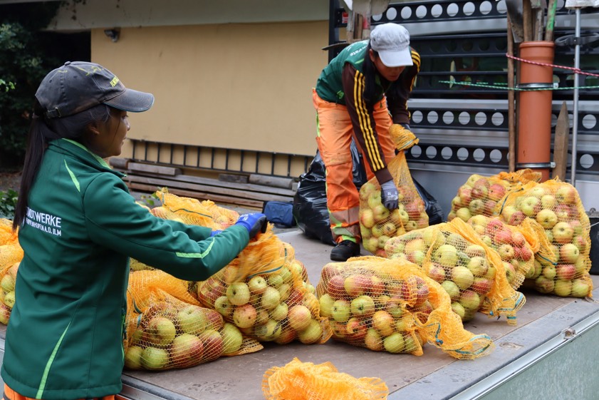 Stadtwerke-Team holt gespendete Früchte am 14. und 21. Oktober ab. Wer einen Teil seiner Ernte abgeben will, kann sich melden. Aus den Früchten wird Saft gepresst.