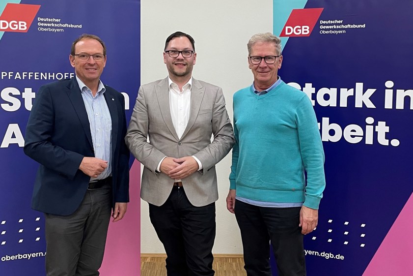(ty) Im Hotel "Alea Eco" in Pfaffenhofen hat diese Woche die Vorstands-Neuwahl des hiesigen DGB-Kreisverbands stattgefunden. Die Veranstaltung begann mit einem Grußwort von Christian De Lapuente, dem kommissarischen Geschäftsführer der DGB-Region Oberbayern. Dann gab der DGB-Kreisvorsitzende Roland Dörfler, bekannt auch als Grünen-Politiker auf Gemeinde- und Landkreis-Ebene sowie als Vize-Bürgermeister von Pfaffenhofen, einen Rückblick zu den Tätigkeiten und Aktionen des DGB-Kreisverbands in den vergangenen vier Jahren.