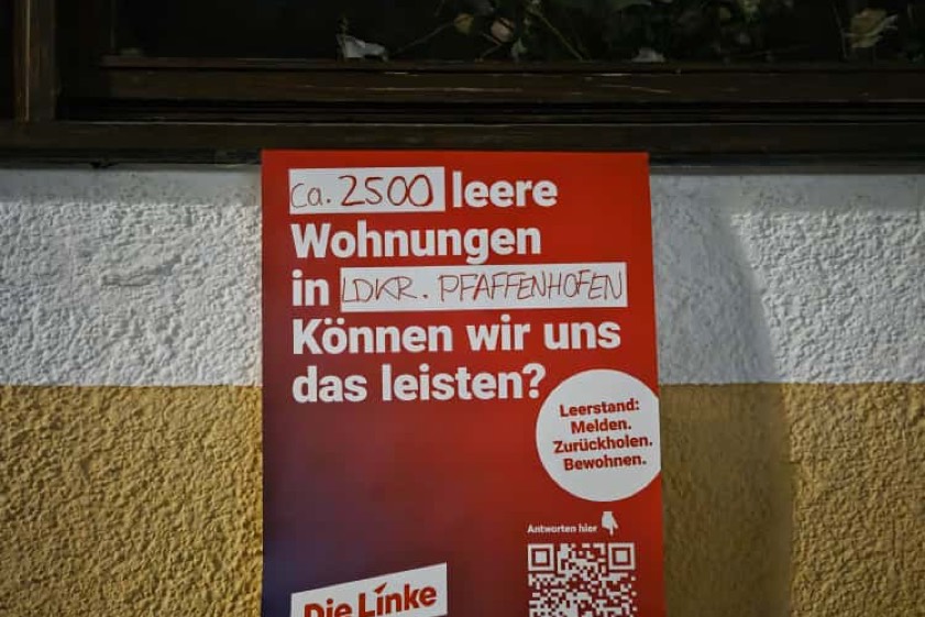 (ty) "Trotz hoher Mieten und akuter Wohnungsnot stehen in Bayern laut Zensus fast 300 000 Wohnungen leer", erklärt "Die Linke". Auch im Kreis Pfaffenhofen seien aktuell rund 2500 Wohnungen ungenutzt – zwei Drittel davon länger als ein Jahr, so die Partei weiter. Deren hiesiger Ortsverband ergänzt: "Im Stadtzentrum von Pfaffenhofen selbst stehen zudem über 15 teils traditionsreiche Gebäude leer, mehr als die Hälfte davon seit mehr als fünf Jahren." Die Linke wolle "diesen Leerstand nicht hinnehmen". In der Nacht zum vergangenen Montag seien im gesamten Freistaat deshalb Plakate an leer stehenden Häusern und Wohnungen angebracht worden, um "Missstände" sichtbar zu machen – auch in Pfaffenhofen.
