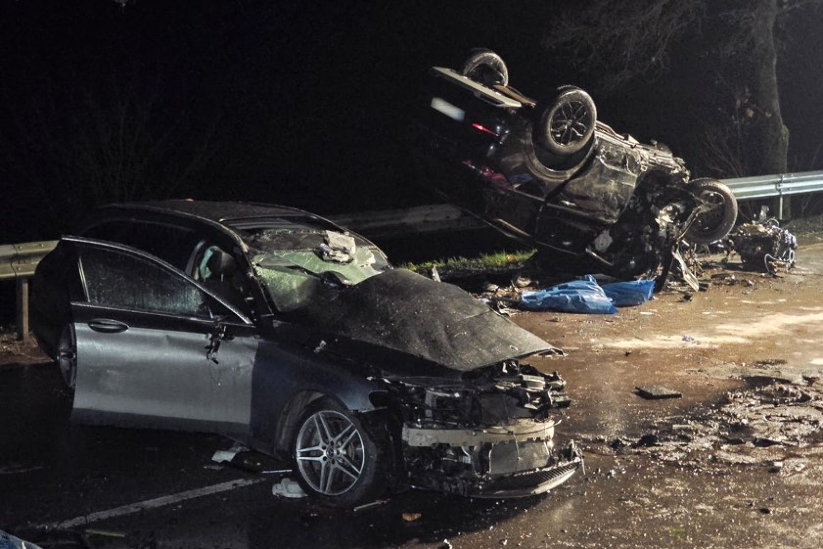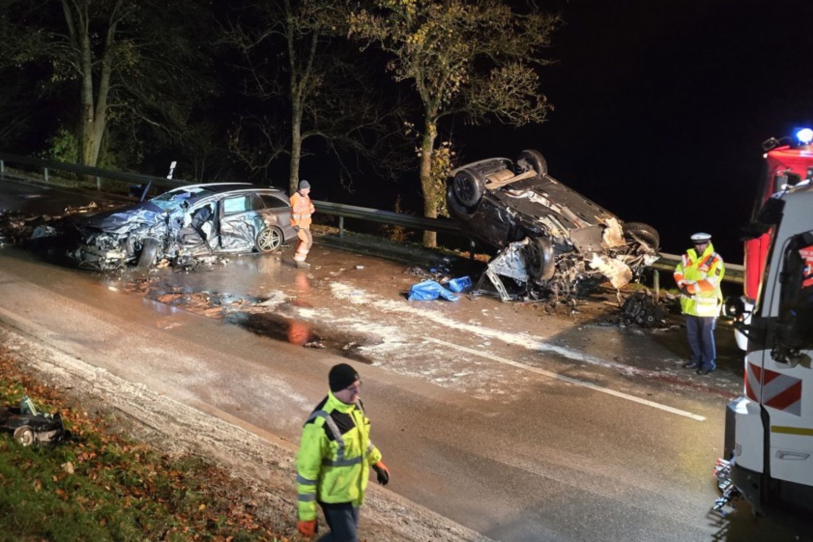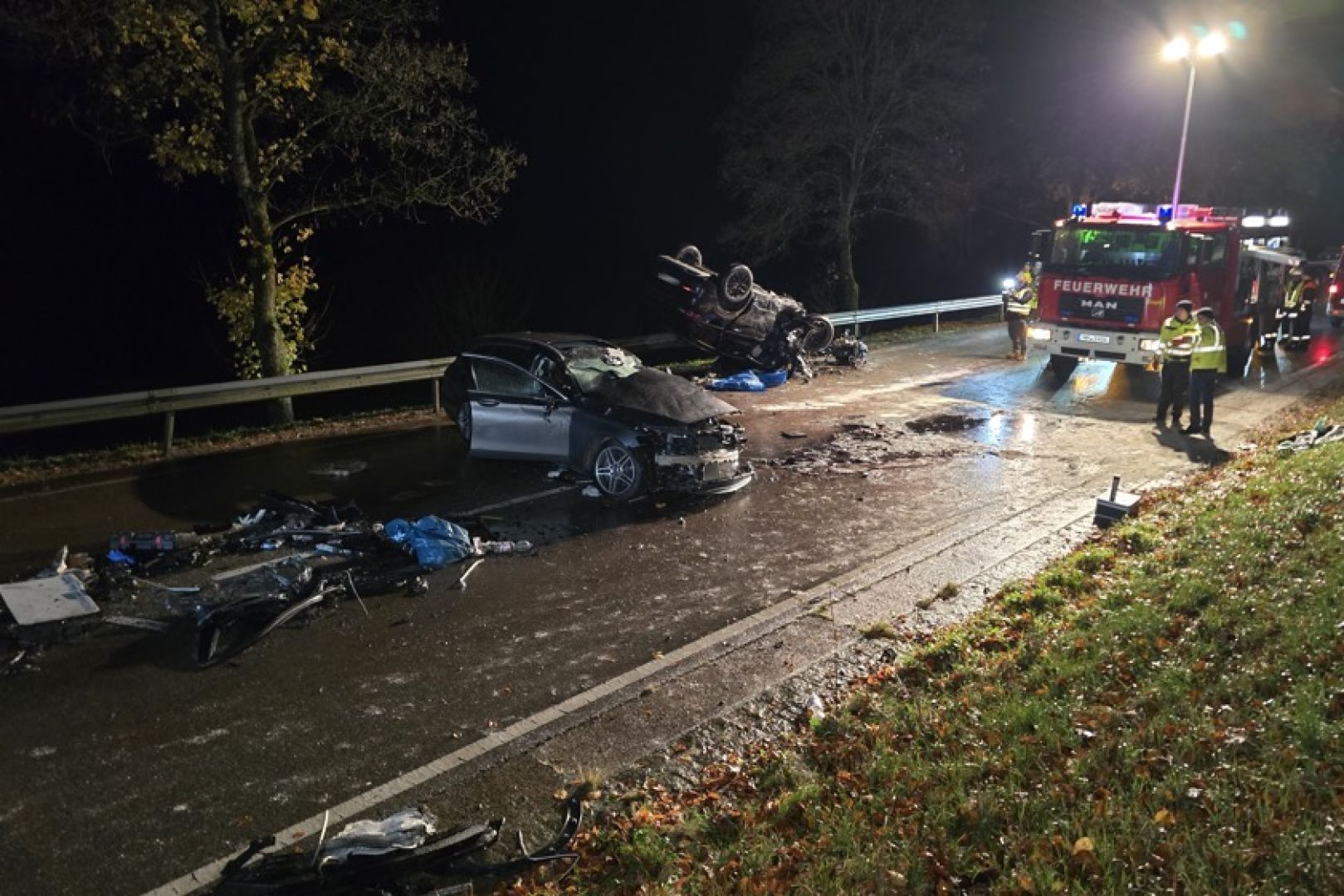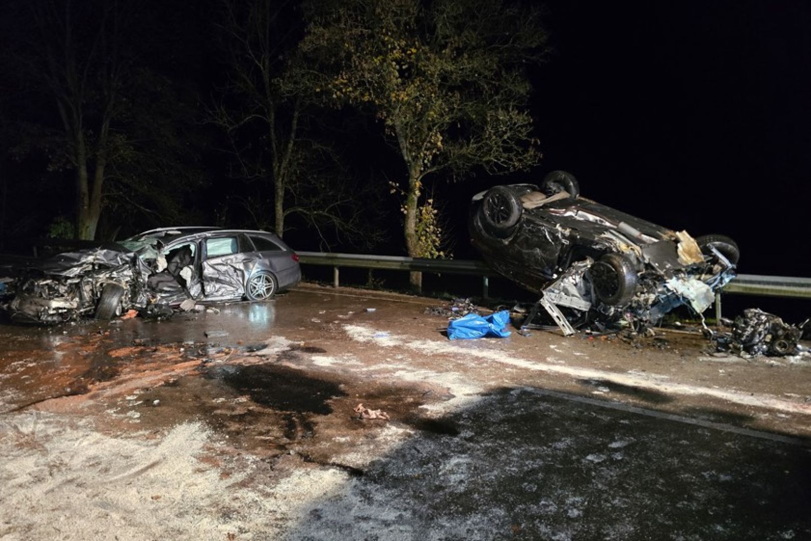 Nach bisherigen Erkenntnissen verlor ein 34-Jähriger die Kontrolle über seinen Mercedes und kollidierte mit dem entgegenkommenden Opel eines 59-Jährigen. Beide Fahrer tot.