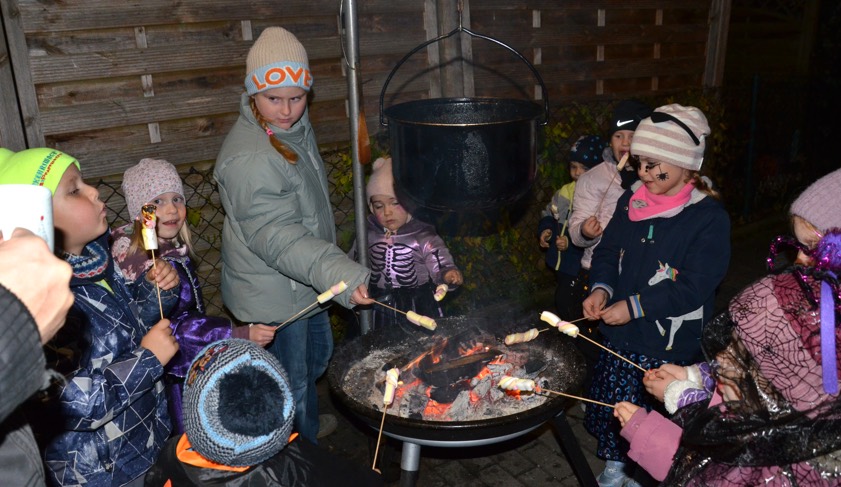 Dort wurde zur Stärkung unter anderem ein schmackhafter Eintopf nebst Brot oder Semmel serviert; dazu gab es verschiedene Getränke für Groß und Klein. Später konnten die Sprösslinge selbst Marshmallows an der Feuerschale  grillen, sich bei Musik und Tanz vergnügen oder einfach auf dem Anwesen spielen und herumtollen. Die Eltern unterhielten sich indes angeregt – unter anderem über eine Neuauflage des Spektakels im nächsten Jahr und ein Nachbarschafts-Fest im Sommer.