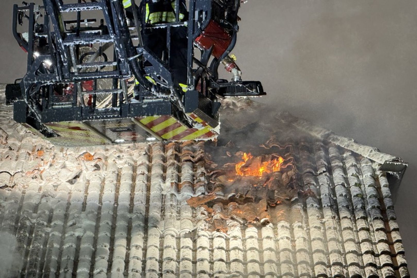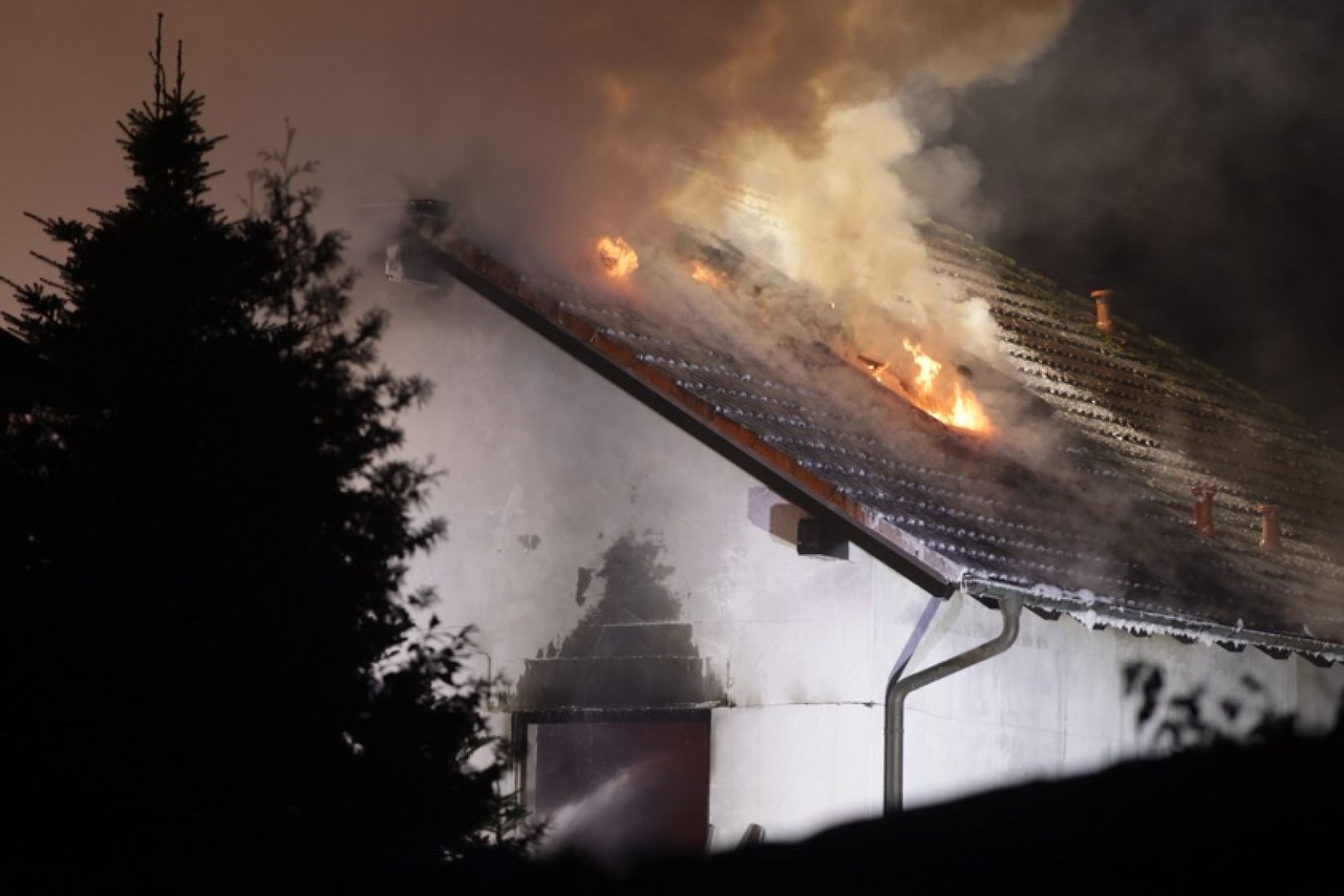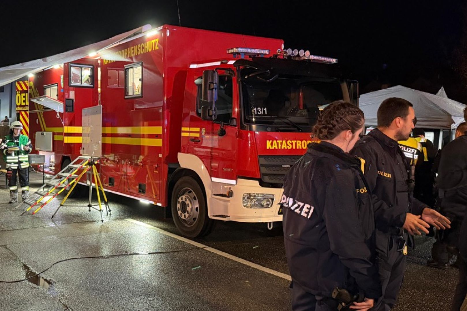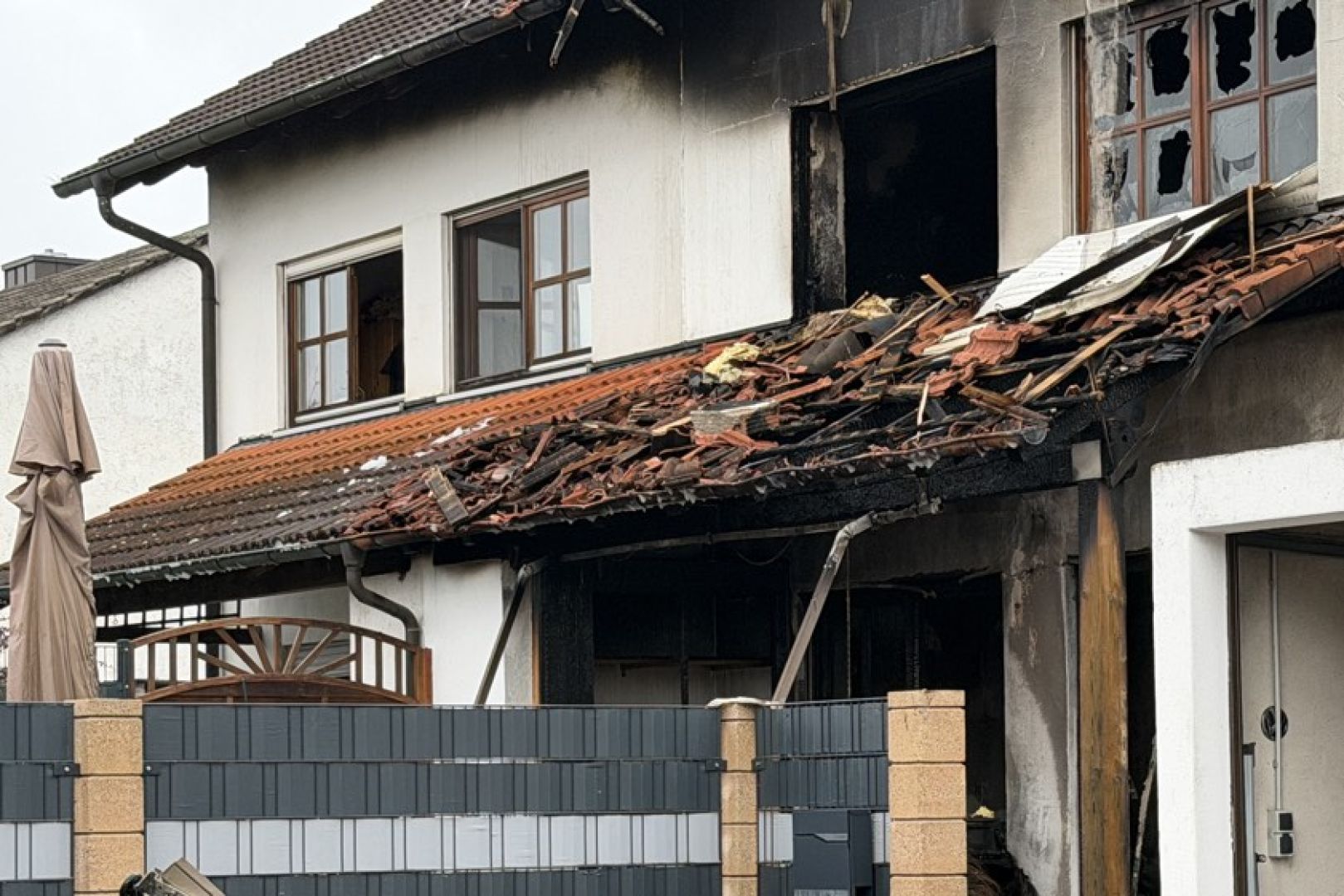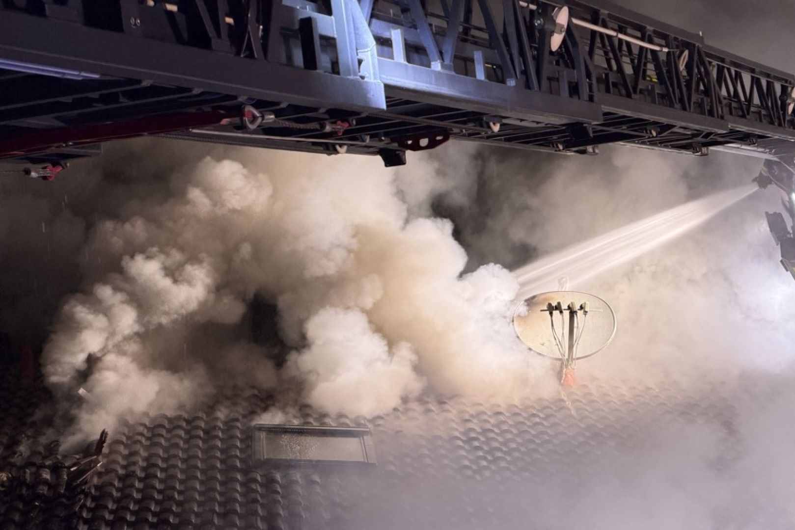 Ein Großaufgebot von Feuerwehr und Rettungsdienst war am gestrigen Sonntag gegen 17.30 Uhr wegen der in Vollbrand stehenden Doppelhaus-Hälfte alarmiert worden. Wie die Nachrichten-Agentur "vifogra" schilderte, war eine dunkle Rauchwolke bereits von Weitem zu sehen. Den Angaben zufolge schlugen Flammen aus dem Dach des betroffenen Gebäudes. Aufgrund der hohen Zahl von angerückten Einsatzkräften – laut BRK waren zeitweise rund 240 Helferinnen und Helfer von Feuerwehr, Polizei, Rettungsdienst und Technischem Hilfswerk (THW) vor Ort – war auch die Schnell-Einsatz-Gruppe "Betreuung und Verpflegung" des Roten Kreuzes angefordert worden. Diese stellte die Versorgung mit Getränken und Essen sicher.