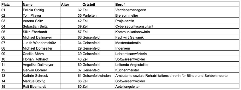 Kathrin Schreck (Platz 13), die bei der Veranstaltung nicht anwesend war, engagiert sich bei "Omas gegen Rechts". Sie wolle sich einsetzen für soziales Miteinander, gegenseitige Unterstützung in Notlagen und mehr kulturelle Angebote.