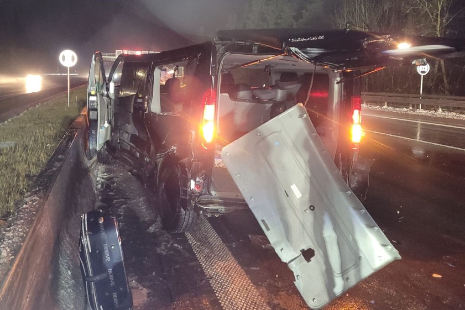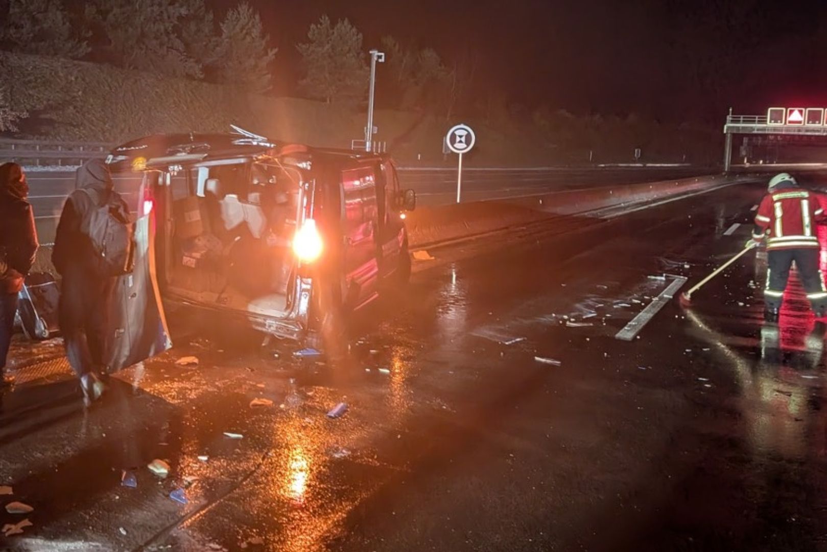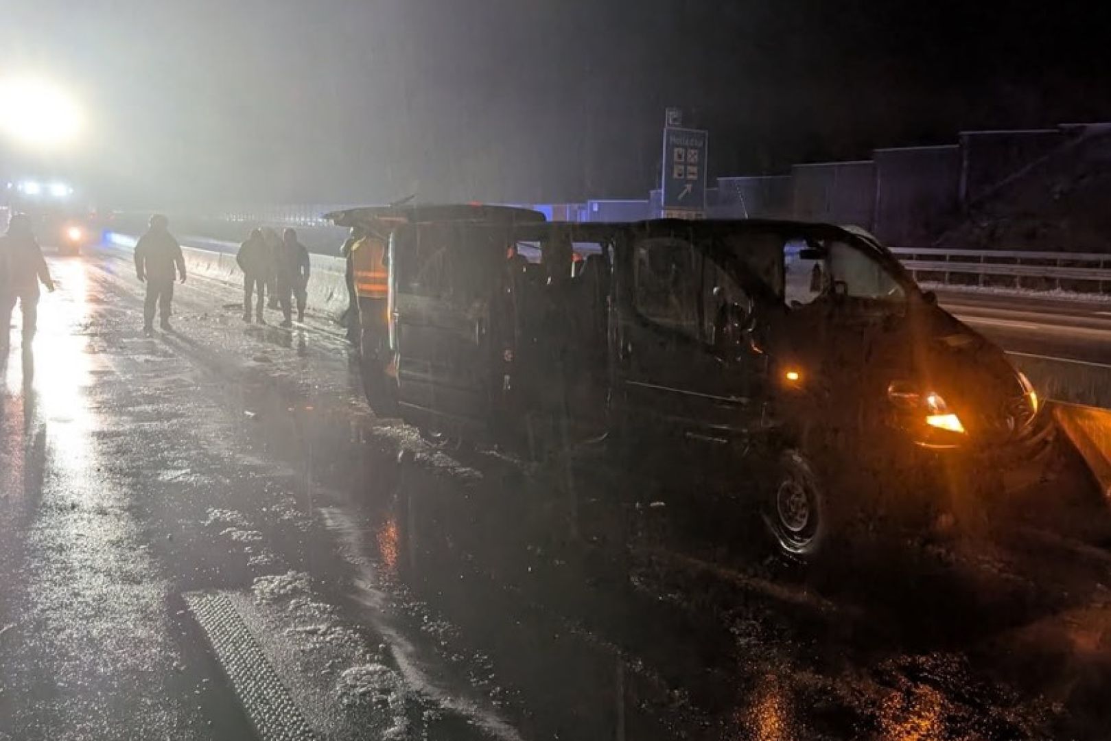 41-Jähriger verlor gestern bei Glätte die Kontrolle über den Wagen. Alle acht Passagiere schliefen, als es schepperte. Sie hatten Glück im Unglück.
