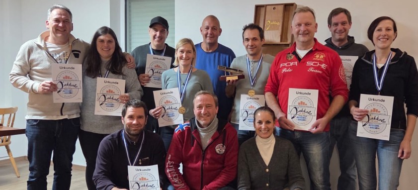Zufriedene Gesichter gab es bei den Teilnehmern an der zweiten bayerische Meisterschaft im Jakkolo. Links: Stefan Friedl, der Vorsitzende des gastgebenden BC Uttenhofen.