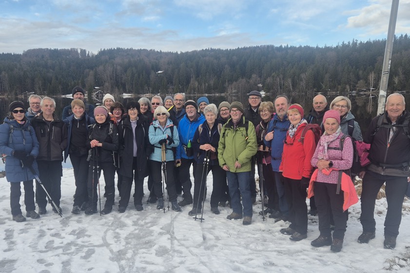 (ty) Eine winterliche Wanderung haben etliche Mitglieder der Sektion Pfaffenhofen-Asch des deutschen Alpenvereins (DAV) am Nikolaustag im Voralpengebiet unternommen (Foto oben). "Vom Bahnhof Reichersbeuern kamen wir über die schneebedeckten Waldwege zum Kirchsee", berichtet Jakob Kraft, der die Tour organisiert hatte und auch als Wander-Leiter fungierte. "Am frühen Nachmittag erreichten wir das Kloster Reutberg zur Einkehr im Bräustüberl. Gut gestärkt führte uns der Weg nach zirka 15 Kilometern wieder zum Bahnhof zur Heimfahrt." Weitere Infos zur hiesigen DAV-Sektion und ihren Angeboten, auch zur Kletterhalle in Pfaffenhofen, gibt es auf https://dav-pfaffenhofen.de.