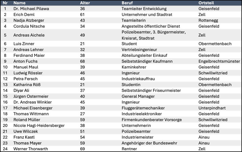 Die Stadtrats-Liste der CSU von Geisenfeld: