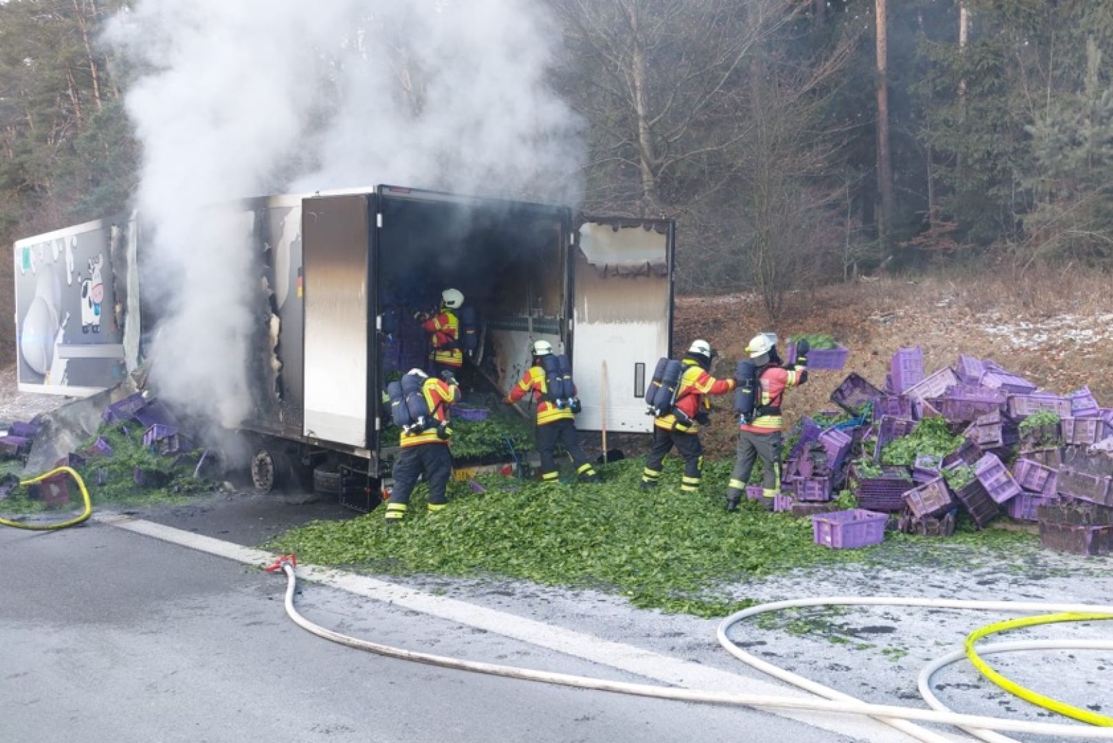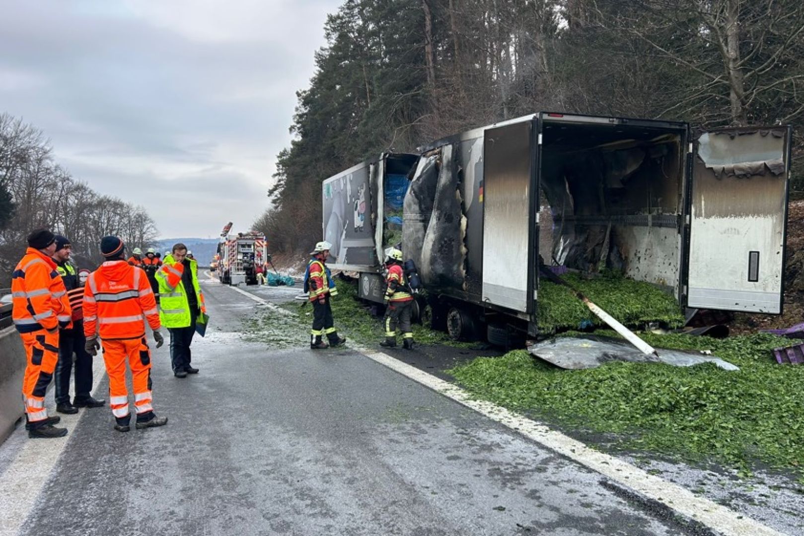 Von der Autobahn-Meisterei sei eine Fachfirma mit der Bergung des Aufliegers sowie der Reinigung der Fahrbahn beauftragt worden. "Weiterführende Ermittlungen zur Brand-Ursache stehen aufgrund der laufenden Bergungs-Arbeiten derzeit noch aus", wurde gegen 15.50 Uhr gemeldet. Die Höhe des insgesamt entstandenen Sachschadens könne momentan noch nicht beziffert werden, "da Beschädigungen der Fahrbahn-Decke nicht ausgeschlossen werden können". An dem Auflieger stehe ein Totalschaden zu Buche; angesiedelt wurde dieser in einer Größenordnung von von 30 000 Euro.