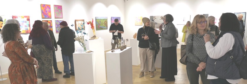 "Der Kunstkreis von Pfaffenhofen ist ein Zusammenschluss von Hobby-Kunstschaffenden aus der Region, die sich regelmäßig austauschen und gemeinsam Ausstellungen organisieren", heißt es aus der Stadtverwaltung. Die Gruppe bestehe bereits seit den frühen 1980er-Jahren. Ihre Werke seien schon in zahlreichen Einzel- und Gemeinschafts-Ausstellungen im Landkreis Pfaffenhofen sowie überregional präsentiert worden. Weitere Informationen zu der Gruppe gibt es auf deren Internet-Seite (hier der direkte Link). Nähere Infos zur städtischen Galerie gibt es unter diesem Link. Die Vernissage zur Ausstellung fand am Freitag unter der Regie von Kultur-Referent Reinhard Haiplik (ÖDP) statt und lockte etliche Interessierte an. (Foto: Cornelia Paulsen-Knop)