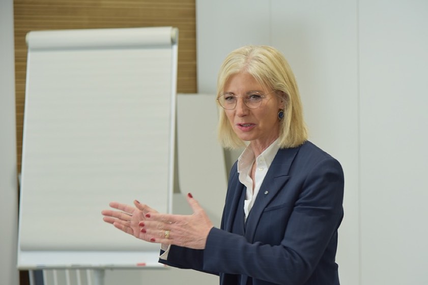 Die Ministerin, die als langjährige Unternehmerin und Sozialpolitikerin über einen umfangreichen Erfahrungsschatz verfügt, stellte klar, dass ein starker Sozialstaat die Menschen schütze, ihnen Chancen eröffne und Teilhabe ermögliche. Dieser bleibe nur dann stabil, wenn Wirtschaftskraft und eigener Leistungswille vor dem Hintergrund einer Balance von Eigenverantwortung und wirtschaftlicher Grundlage stünden. Verlässliche, hochqualitative Kinder-Betreuung stellte Scharf als "sehr wichtig" heraus, diese gelte es weiter zu erhalten. Potenzial sehe sie bei Frauen, was die Suche nach Fachkräften anbelange. Darüber hinaus bleibe berufliche Weiterbildung ein wichtiger Baustein im Arbeitsleben.
