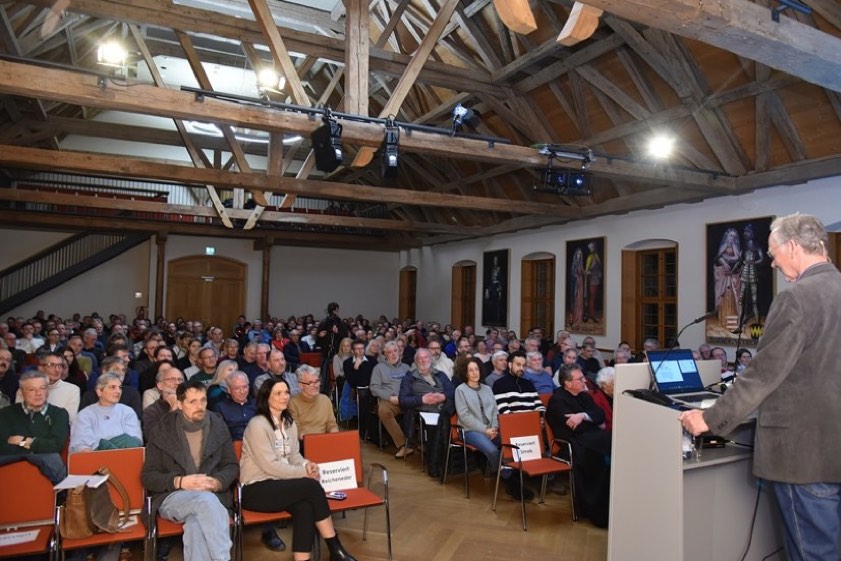 (ty) Unter dem Motto "Windkraft braucht Grenzen" haben Bürger-Initiativen gestern Abend in Scheyern über die aktuellen Windkraft-Planungen und die aus ihrer Sicht gravierende Folgen für Gesundheit, Natur und Landschaft in der Region und im Freistaat informiert. Eingeladen hatten die hiesige Initiative "Mensch und Natur Pfaffenhofen-Freising" sowie das bayernweite Bündnis "Haltet inne". Tenor im vollbesetzten Wittelsbacher-Saal des Klosters war die Forderung nach einem sofortigen Umdenken beim Windkraft-Ausbau.