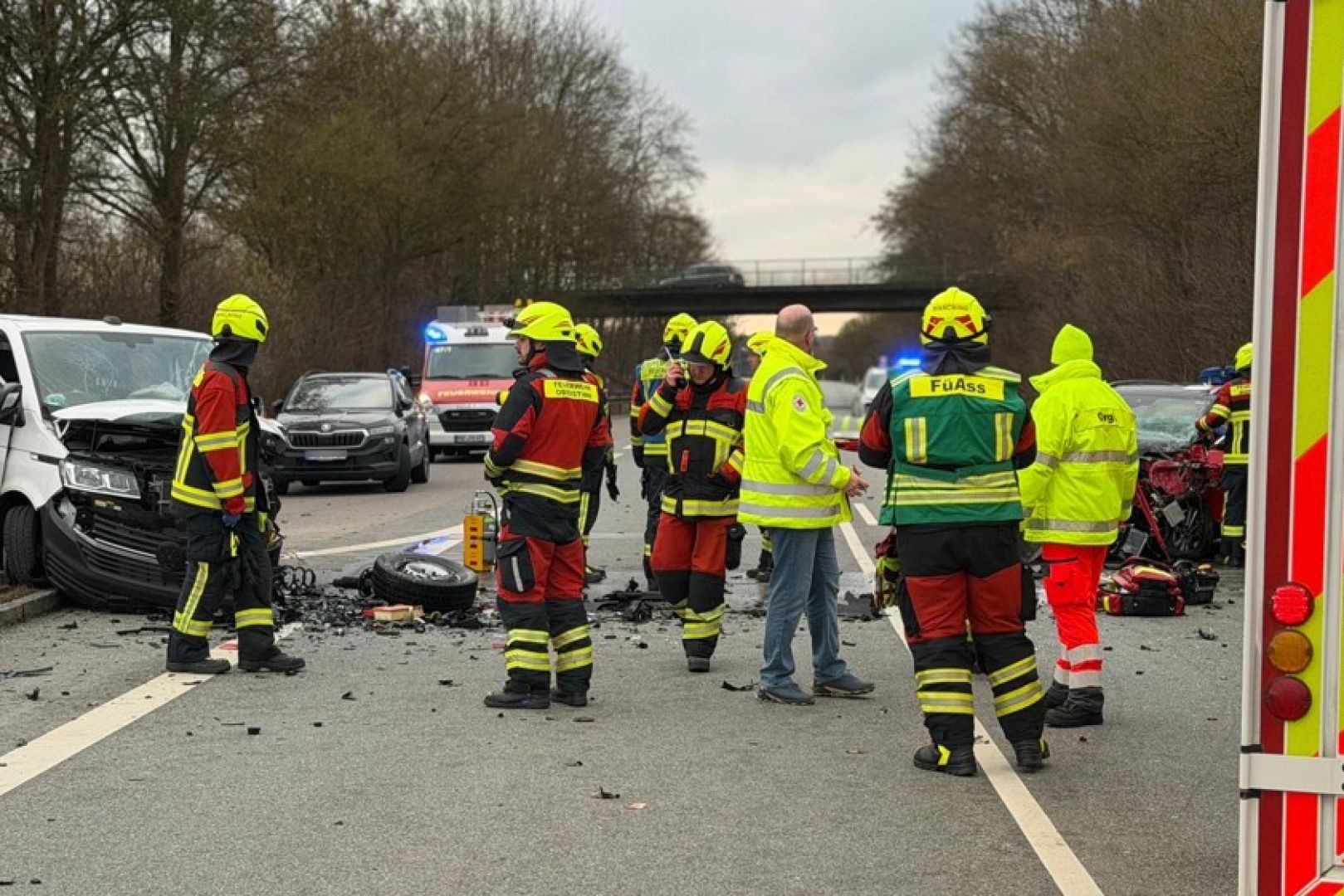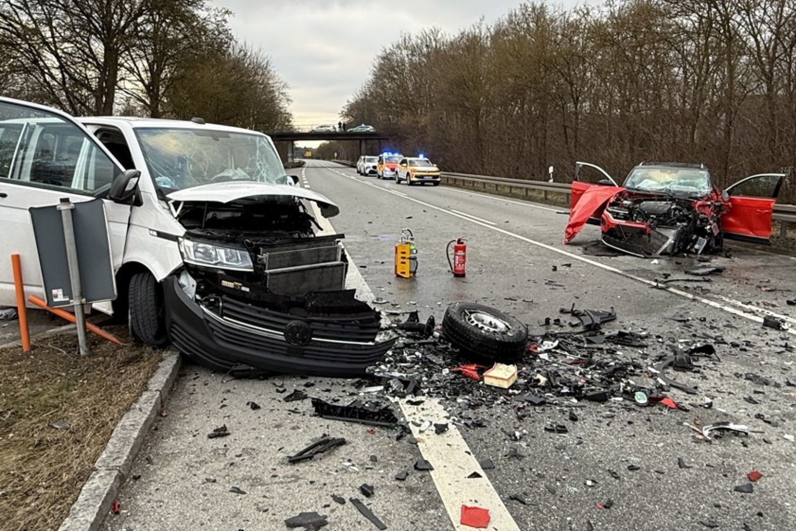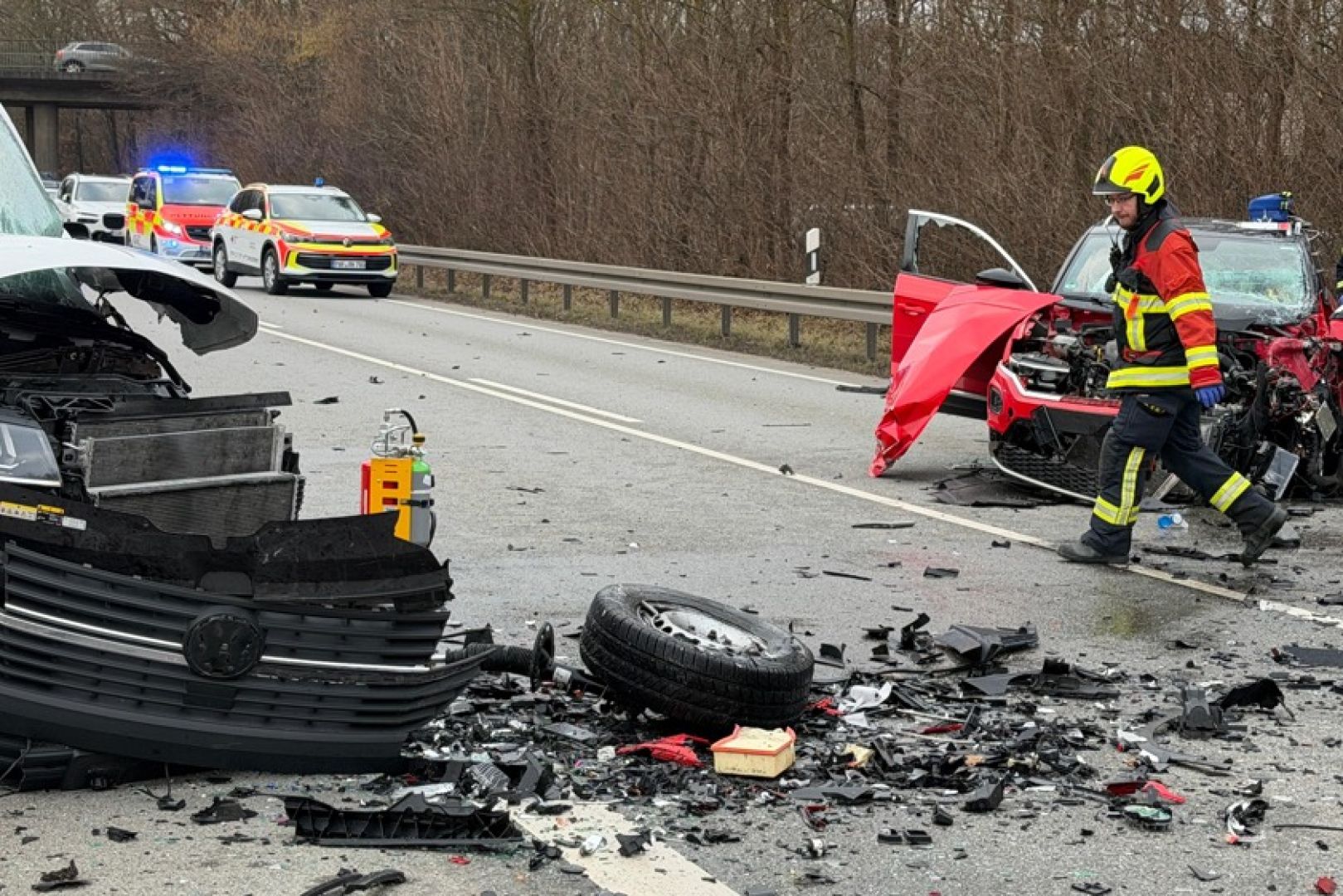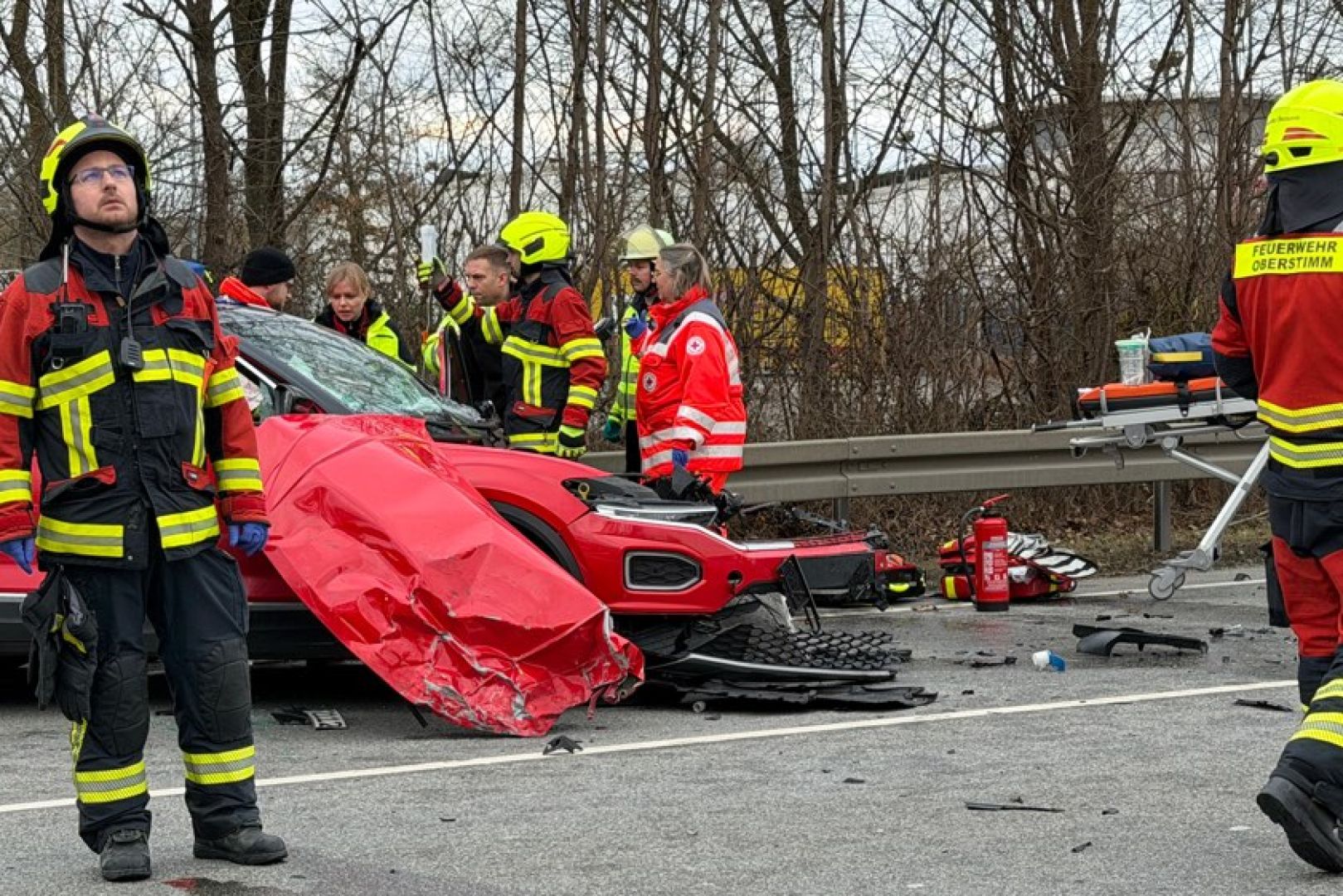 Durch den Zusammenstoß seien alle sieben Kleinbus-Insassen sowie der T-Roc-Lenker verletzt worden. Laut weiterer Mitteilung der Polizei wurden drei Personen jeweils schwer verletzt sowie fünf Personen jeweils leicht verletzt. Ein Großaufgebot von Rettungskräften sei vor Ort gewesen. Alle Verunglückten seien zunächst vor Ort erstversorgt sowie anschließend zur weiteren Behandlung in umliegende Krankenhäuser gebracht worden. Im Einsatz waren auch die Feuerwehren aus Manching, Oberstimm und Pichl.