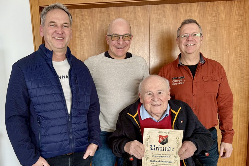 (ty) Der Ball-Club von Uttenhofen (BCU) hat Hellmuth Inderwies für dessen 25-jährige Mitgliedschaft ausgezeichnet und mit der silbernen Vereins-Nadel bedacht (Foto oben). BCU-Chef Stefan Friedl betonte in diesem Zusammenhang, es sei nicht selbstverständlich, dass der langjährigste Vorsitzende des FSV Pfaffenhofen zusätzlich so lange Mitglied bei dem kleinen Pfaffenhofener Ortsteil-Klub sei. Gratuliert wurde Hellmut Inderwies auch von Norbert Thurner, dem Kreis-Ehrenamts-Beauftragten des bayerischen Fußball-Verbands (BFV), sowie Wolfgang Inderwies, Ehrenvorsitzender des BCU.