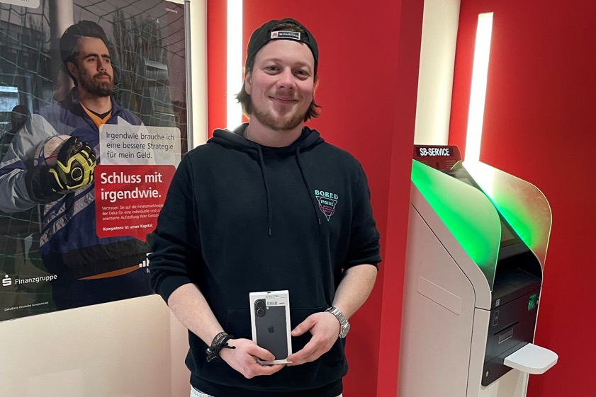 (ty) Christian Hirschberger aus Reichertshausen hat bei der Sparkasse von Pfaffenhofen ein iPhone-17 im Wert von 950 Euro gewonnen (Foto oben). Überreicht wurde ihm dieses kürzlich von Yvonne Kögl, der Leiterin der Filiale in Reichertshausen. Hintergrund dieser Übergabe: Von 20. November bis 24. Dezember hatte die Sparkasse ein Weihnachts-Gewinnspiel durchgeführt.