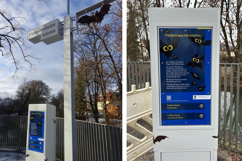 Die Fledermaus-Hörstation ist laut Stadtverwaltung eine weitere Umweltbildungs-Maßnahme im Rahmen der kommunalen Biodiversitäts-Strategie. Informationen zu weiteren Projekten gibt es auf der Internet-Seite der Kreisstadt (hier der direkte Link). "Zu den Arten, die vor Ort besonders häufig vorkommen und an der Station gehört werden können, zählen die Wasserfledermaus, die Zwergfledermaus und der Große Abendsegler", heißt es weiter. "Alle drei sind nachtaktiv und orientieren sich mithilfe von Ultraschall-Lauten, mit denen sie auch ihre Beute orten."