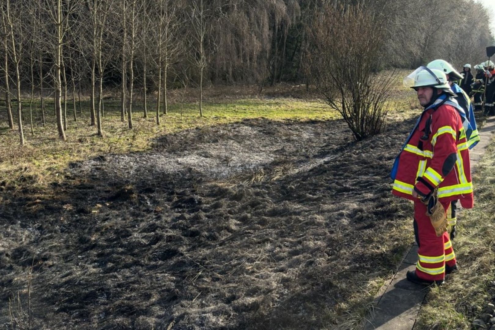 Vermutlich durch Funkenflug hatte sich am gestrigen Nachmittag ein zirka 400 Quadratmeter umfassender Flächenbrand entwickelt.