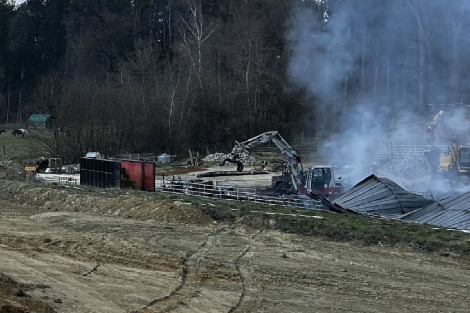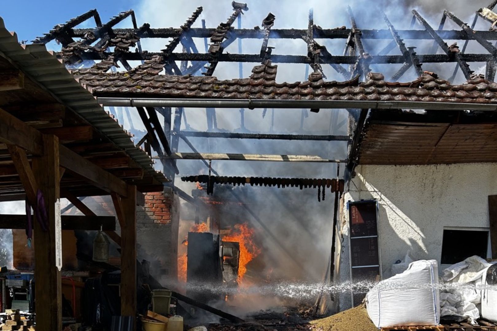Im weiteren Verlauf des Einsatzes wurden den Angaben zufolge auch Bagger eingesetzt, die die eingestürzten Teile der Scheune abtrugen und zur Seite räumten, um so das weitere Ablöschen des Feuers zu ermöglichen. Neben den Floriansjüngern aus Train waren die Kameraden aus Mallmersdorf, Elsendorf, Mainburg und Neustadt an der Donau sowie die "Unterstützungs-Gruppe örtliche Einsatz-Leitung" vor Ort. Außerdem angerückt waren Polizeibeamte und der Rettungsdienst sowie ein Krisen-Interventions-Team des BRK.