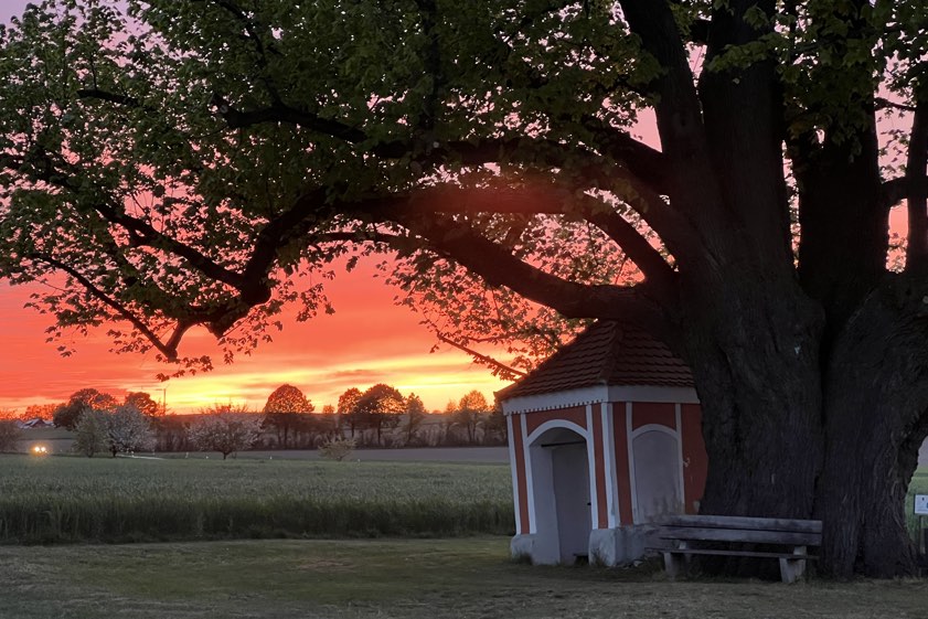 (ty) Und schon geht sie weiter, die Serie von beeindruckenden Fotos aus der Region, die uns unsere Leserinnen und Leser nach wie vor übermitteln. Das Bild, das wir Ihnen am heutigen Mittwoch zeigen können, hat uns Richard Bergmoser zukommen lassen. Er wohnt in Reichertshofen, die Aufnahme entstand aber im Gemeinde-Gebiet von Karlskron (Kreis Neuburg-Schrobenhausen). Nach eigenem Bekunden hat Bergmoser die Lindenkapelle bei Aschelsried am gestrigen Abend abgelichtet. "Die Wurzeln der Sommerlinde haben die Kapelle in die Schieflage gebracht", berichtet er. "Die Linde selbst wurde angeblich um 1650 gepflanzt, hat also schon einige Jahre hinter sich."