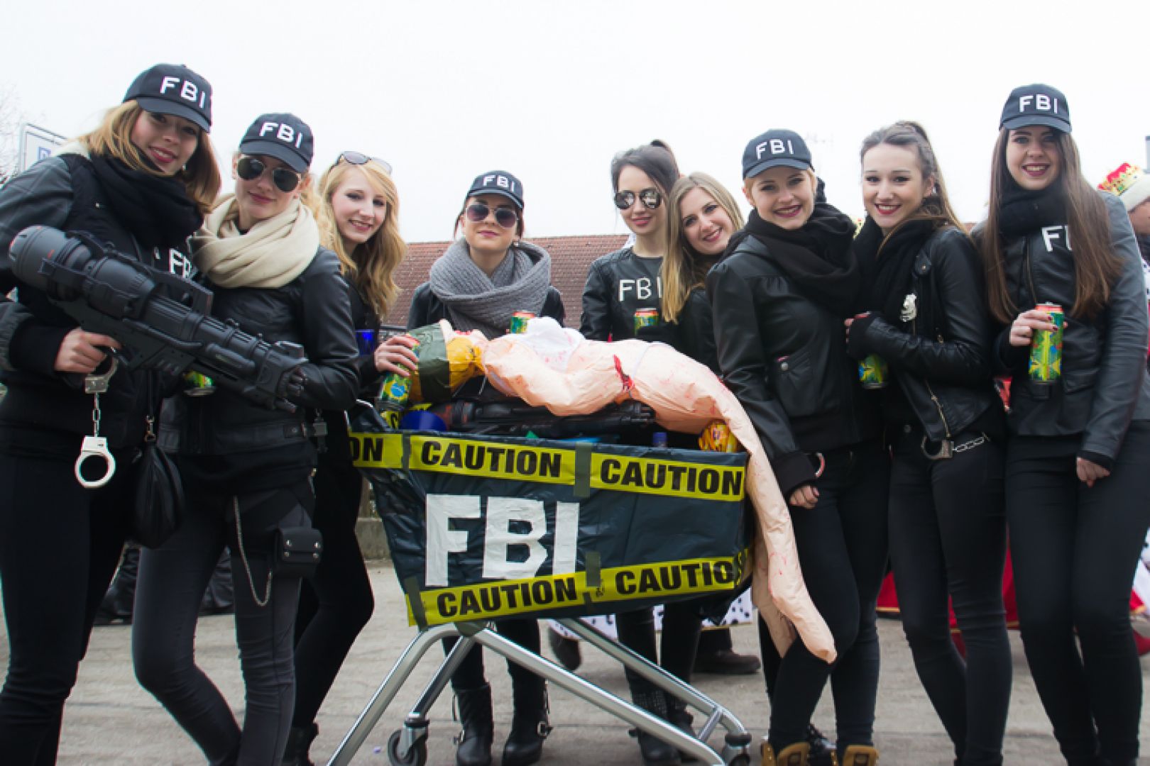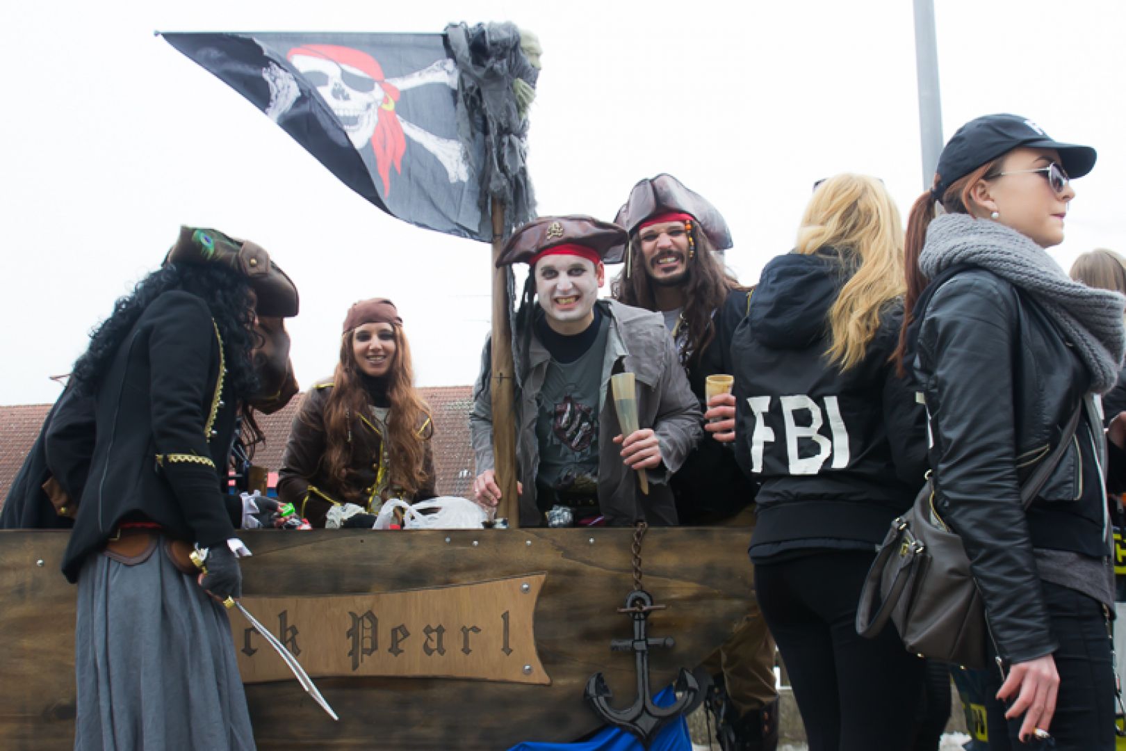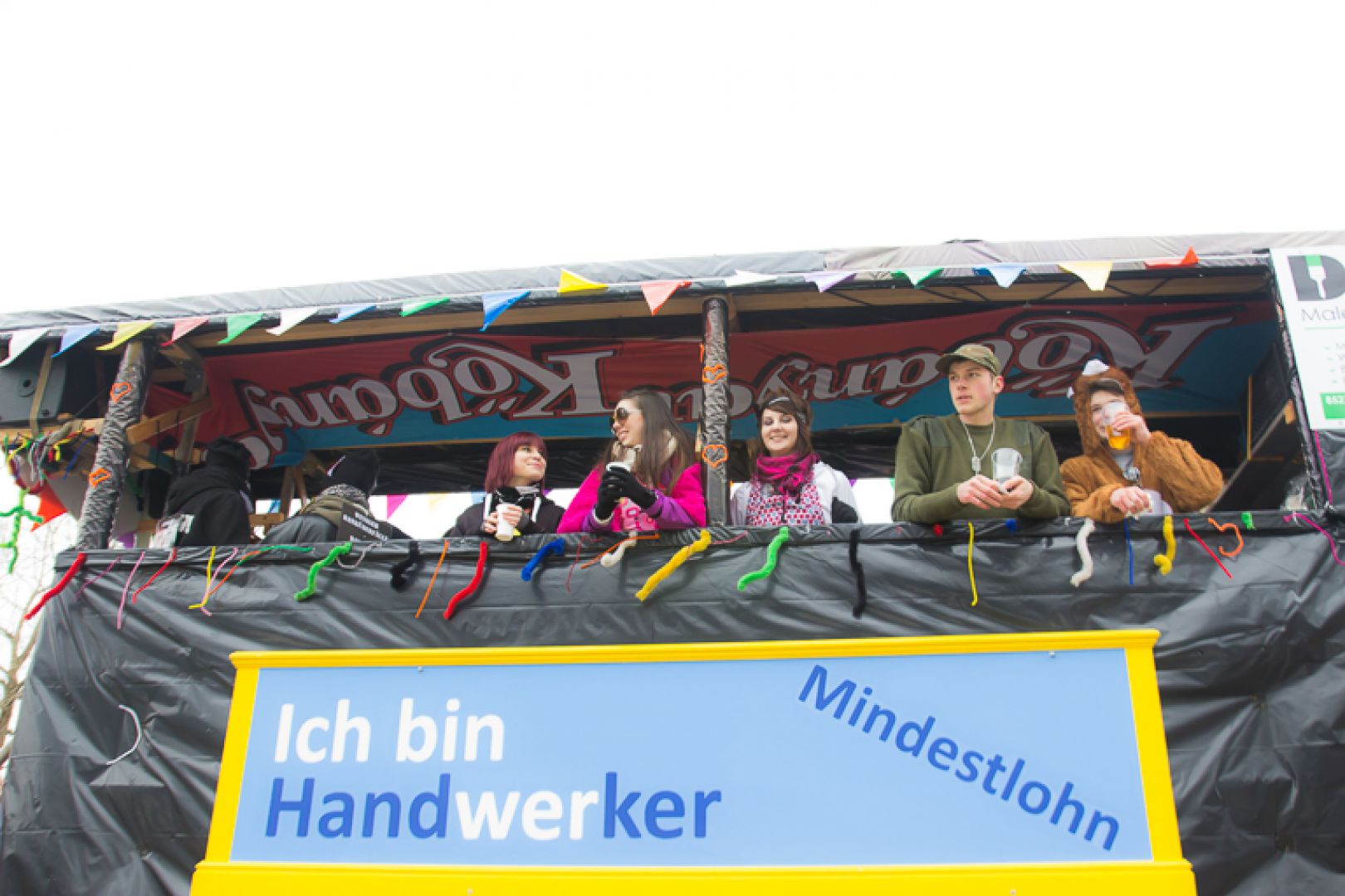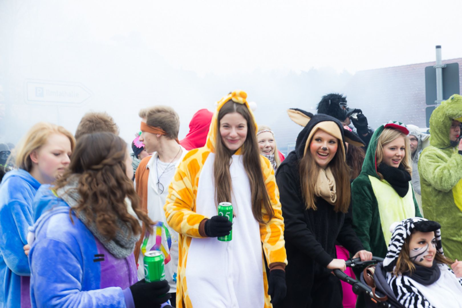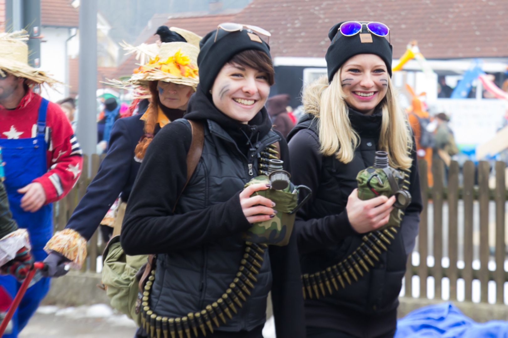Die Motivwagen nahmen Lufthansa und die Streiks aufs Korn, ein fahrender Kinderspielplatz freute sich hämisch, dass heimische Kinder nicht länger unter „Bodenhaltung“ zu leiden hätten und furchterregende Perchten versprachen das Rathaus zu stürmen, um den Dauerstreit zu schlichten. Durstige Superhelden rollten an, um Saufgelage und „Eskalationen“ zu verhindern. Blaue Radler versuchten im Achter-Tretmobil auf Kurs zu bleiben und die „Bundeswehr schlich daher“: Ein Panzerstoßtrupp rollte auf leisen Sohlen durch die Menge: Der Papp-Leopard war mit Fliesenkleber zusammengeleimt. Unter dem Geschützturm sorgte ein schrottreifer VW-Golf für den eher geruhsamen Vortrieb.