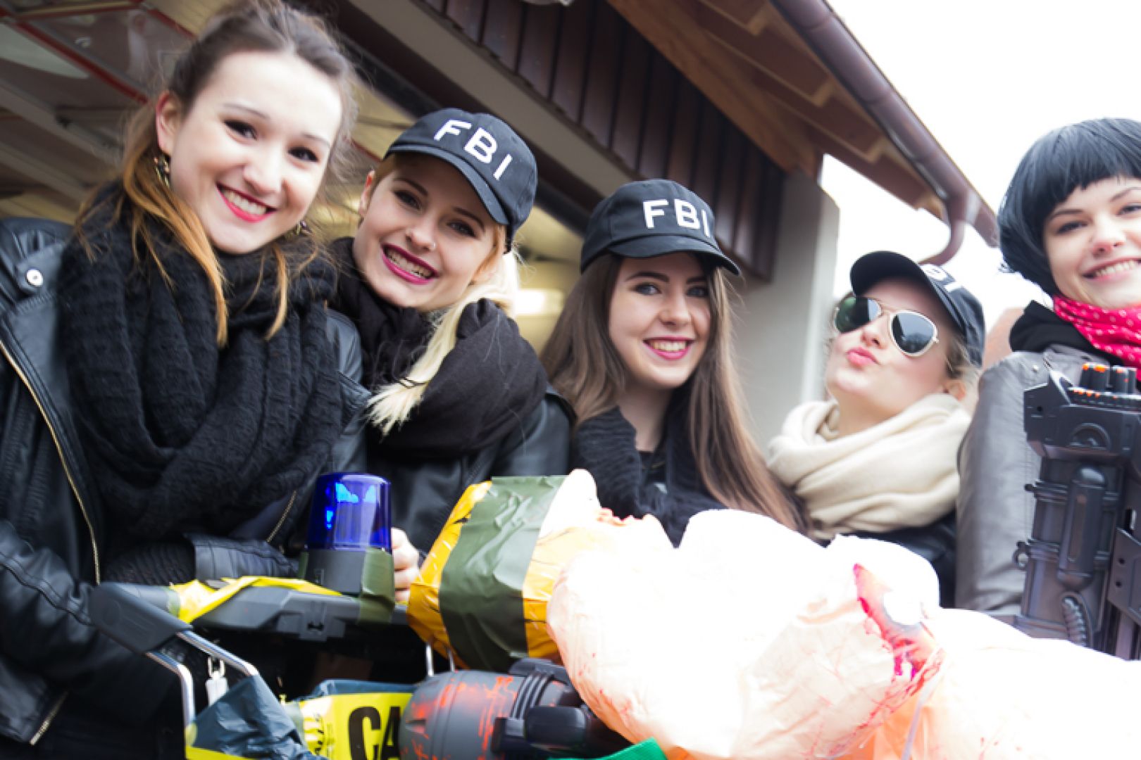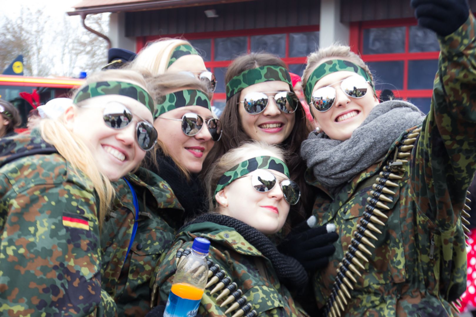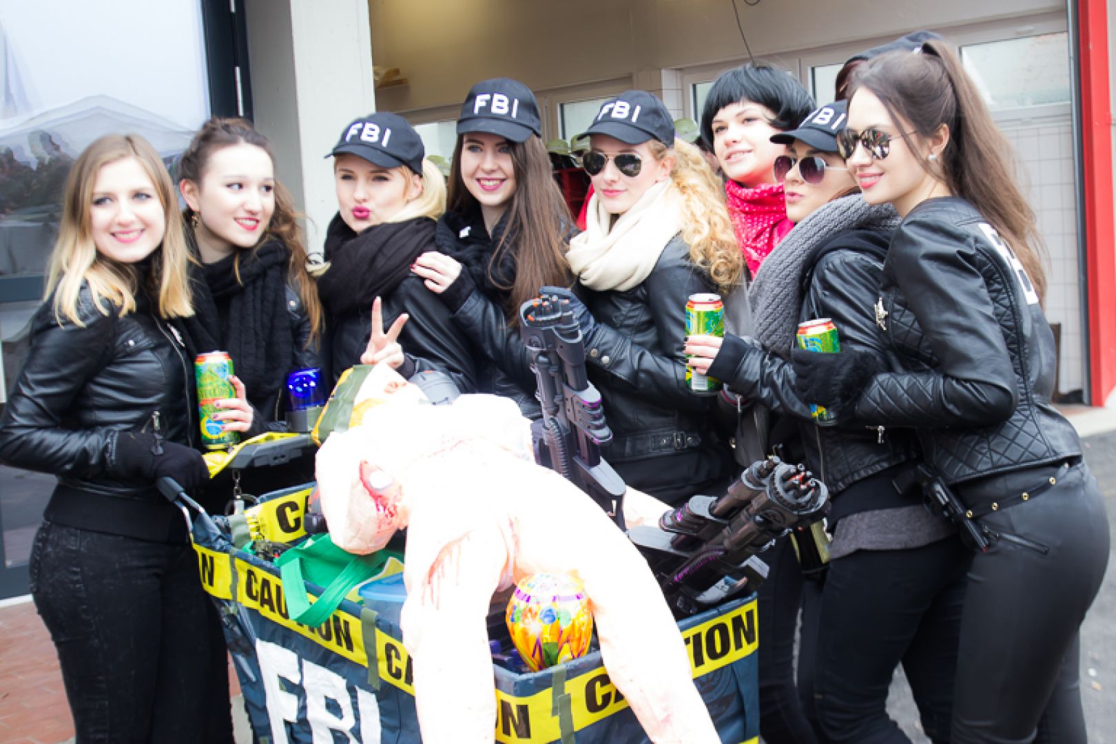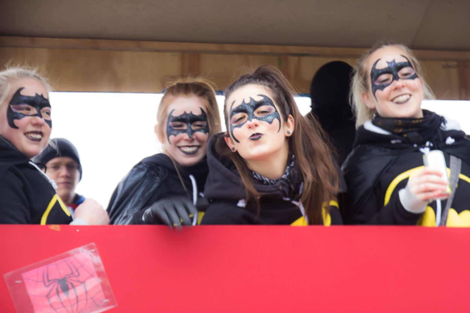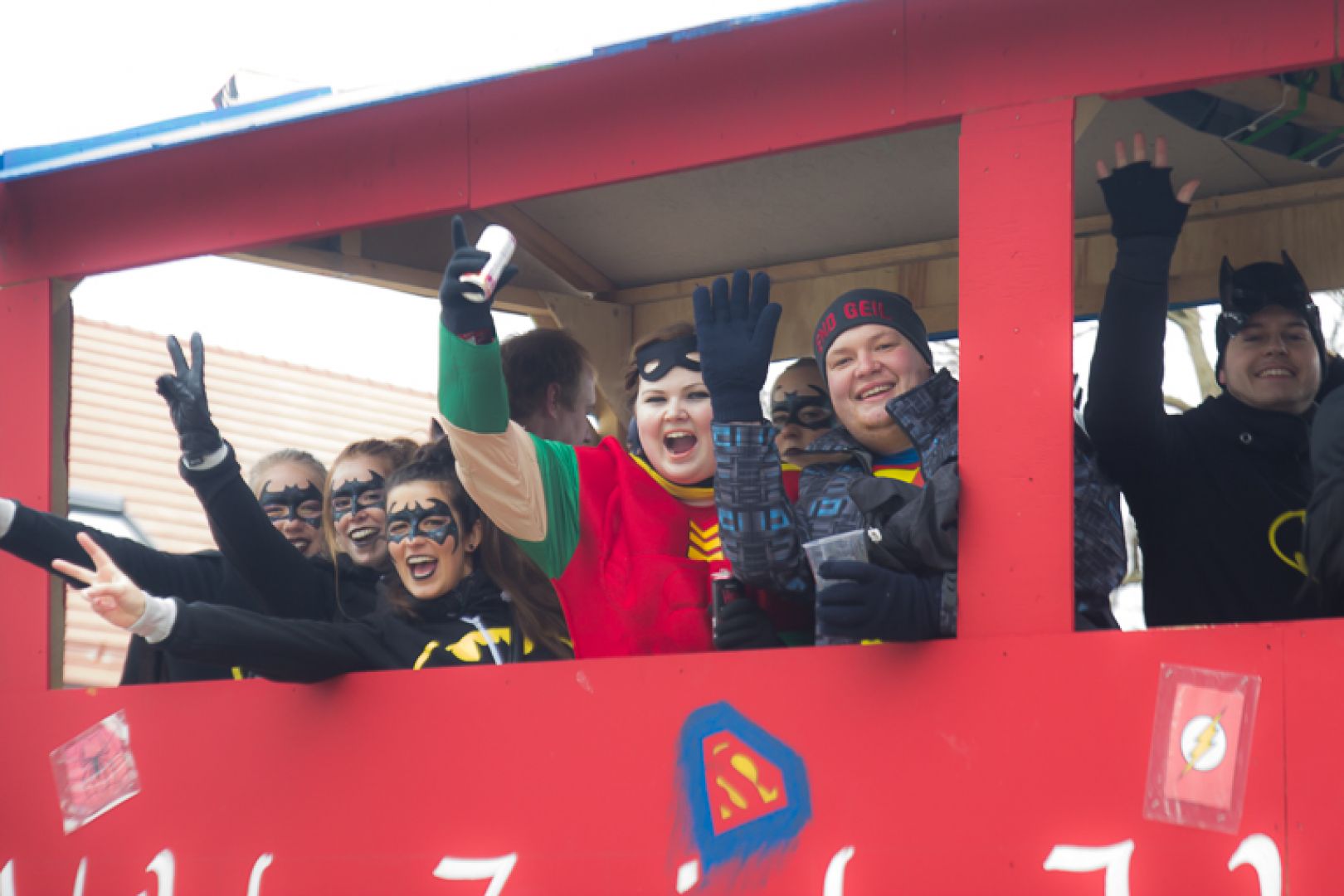 Die Motivwagen nahmen Lufthansa und die Streiks aufs Korn, ein fahrender Kinderspielplatz freute sich hämisch, dass heimische Kinder nicht länger unter „Bodenhaltung“ zu leiden hätten und furchterregende Perchten versprachen das Rathaus zu stürmen, um den Dauerstreit zu schlichten. Durstige Superhelden rollten an, um Saufgelage und „Eskalationen“ zu verhindern. Blaue Radler versuchten im Achter-Tretmobil auf Kurs zu bleiben und die „Bundeswehr schlich daher“: Ein Panzerstoßtrupp rollte auf leisen Sohlen durch die Menge: Der Papp-Leopard war mit Fliesenkleber zusammengeleimt. Unter dem Geschützturm sorgte ein schrottreifer VW-Golf für den eher geruhsamen Vortrieb.