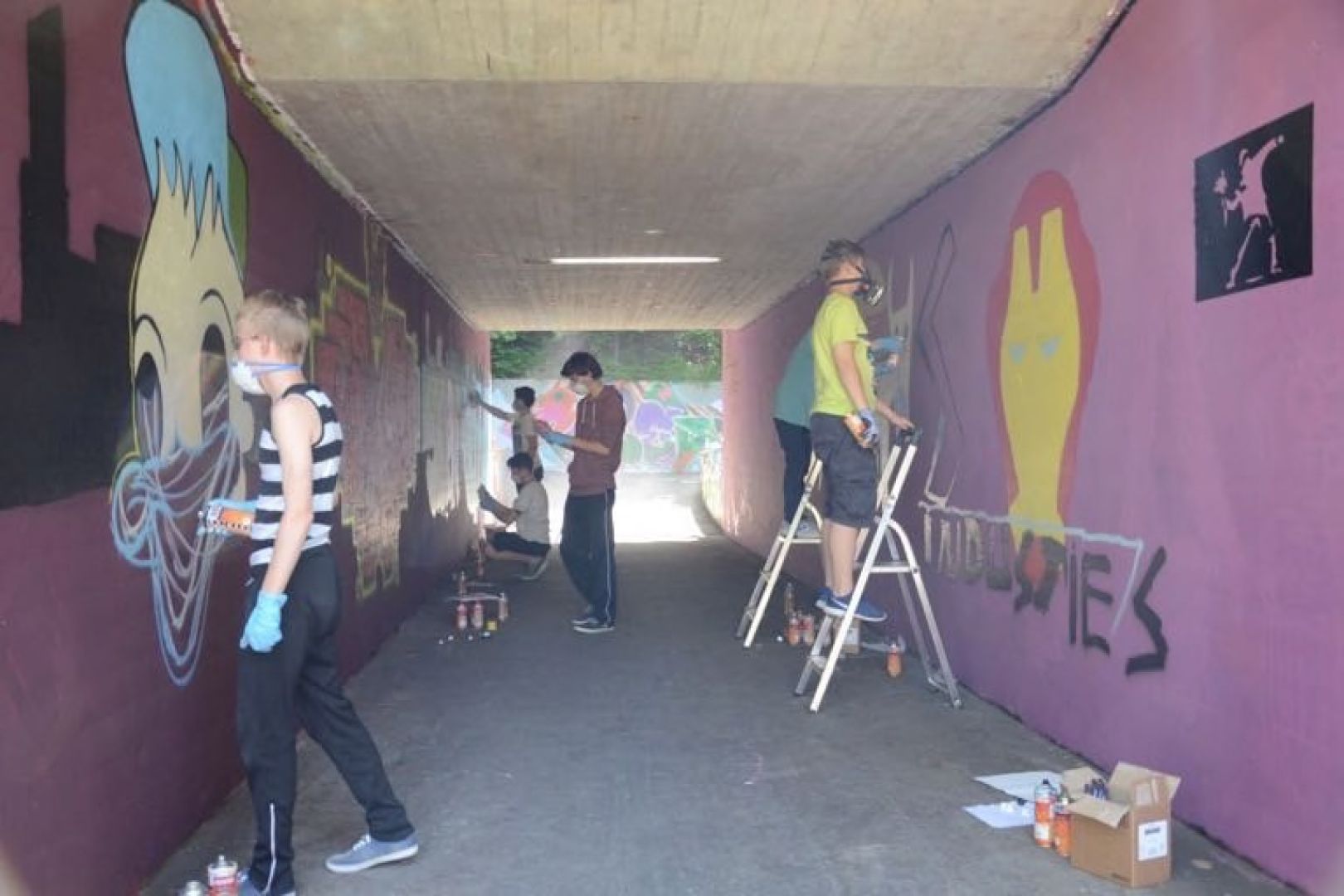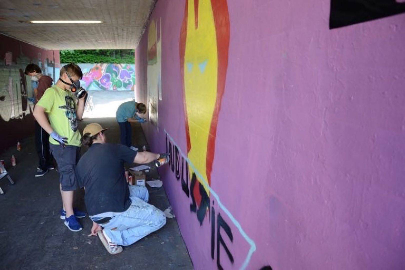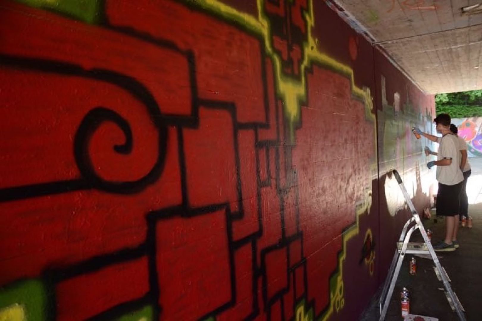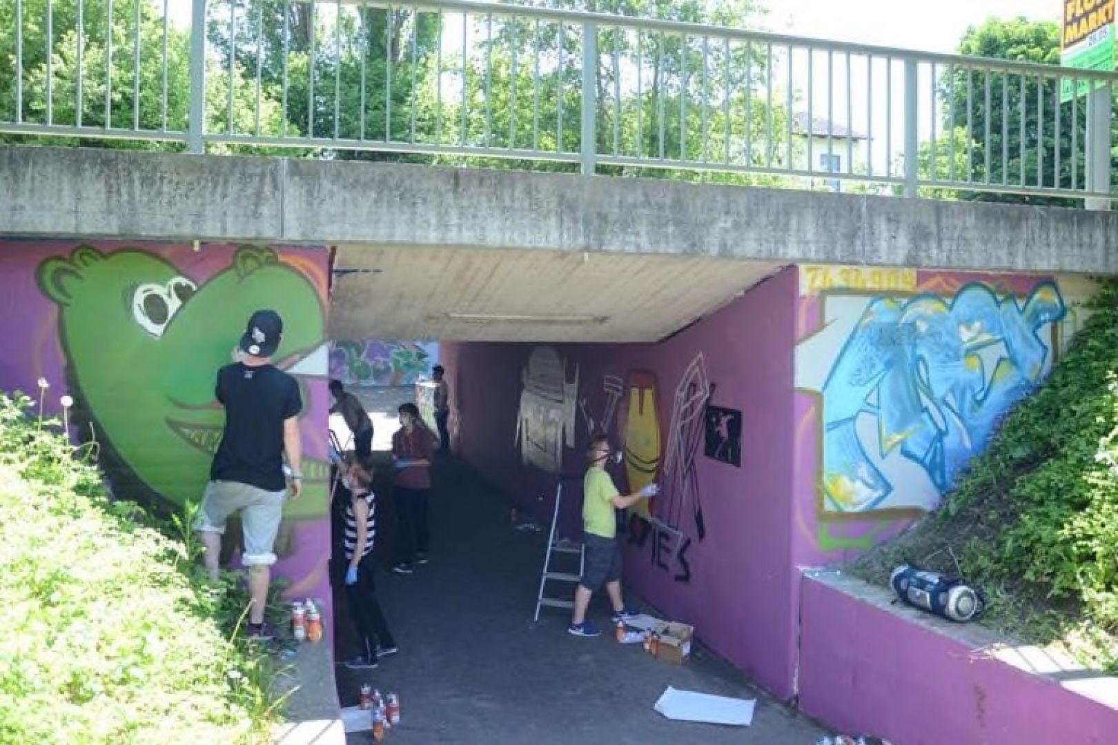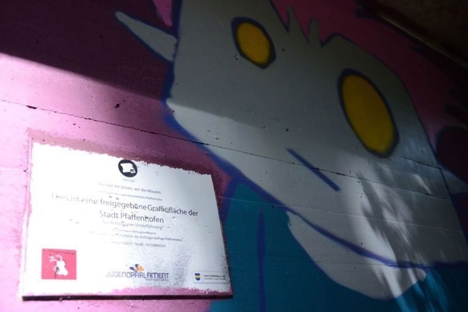 (zel) Hier wurde im wahrsten Sinne des Wortes jede Menge Kreativität versprüht. Die Pfaffenhofener Stadtjugendpflege hat an diesem Wochenende wieder einen der gefragten Graffiti-Workshops veranstaltet. Diesmal hieß es in und an der Fußgänger-Unterführung, die unter der Umgehungsstraße in Richtung Kindergarten Maria Rast und Grundschule Niederscheyern verläuft: „Kreativ an die Wand.“