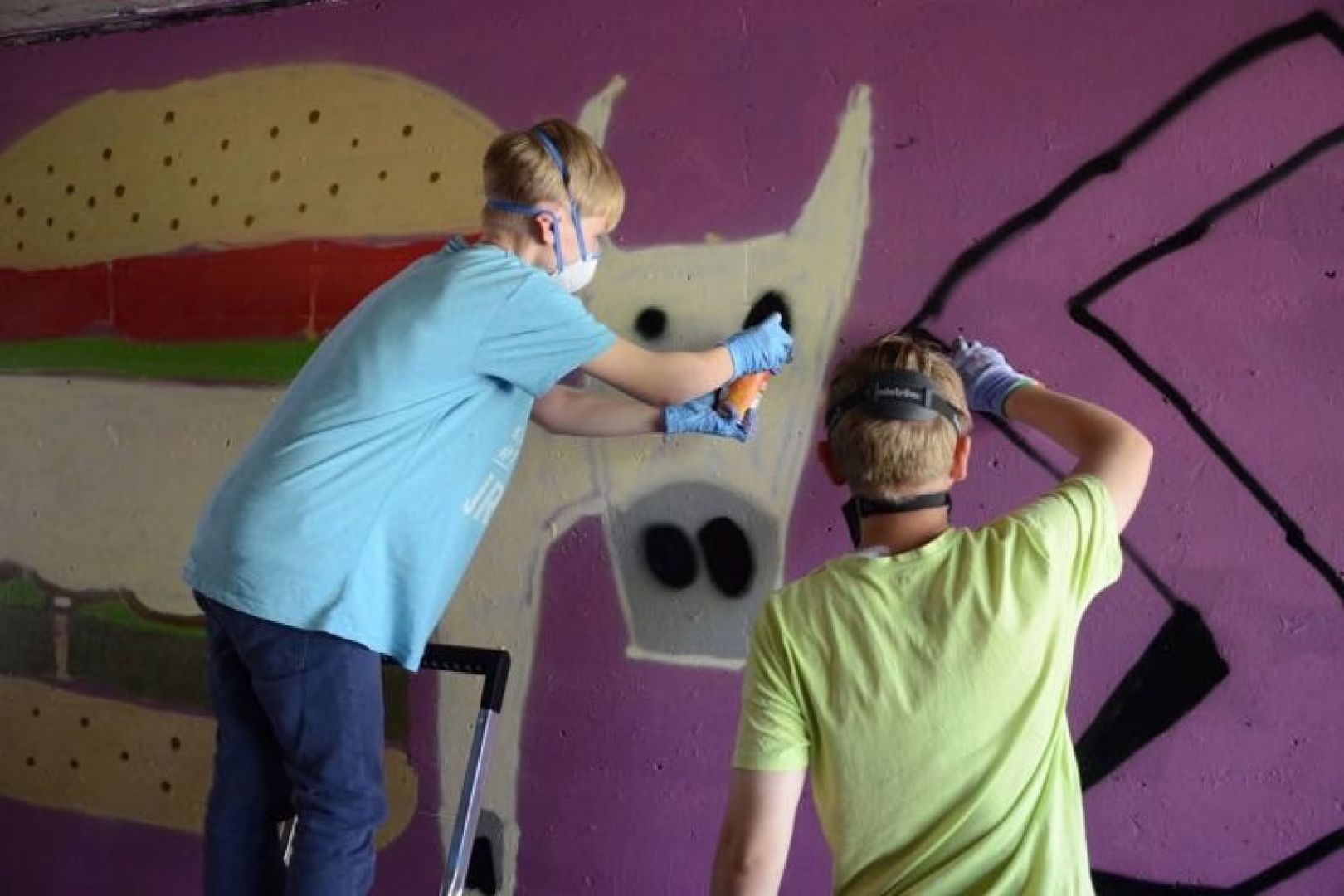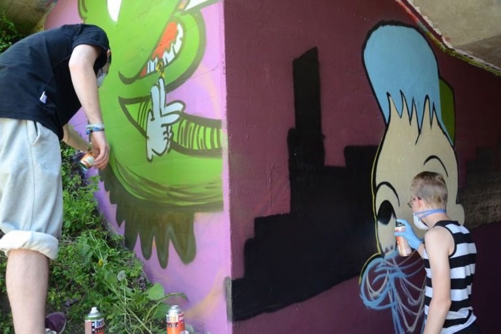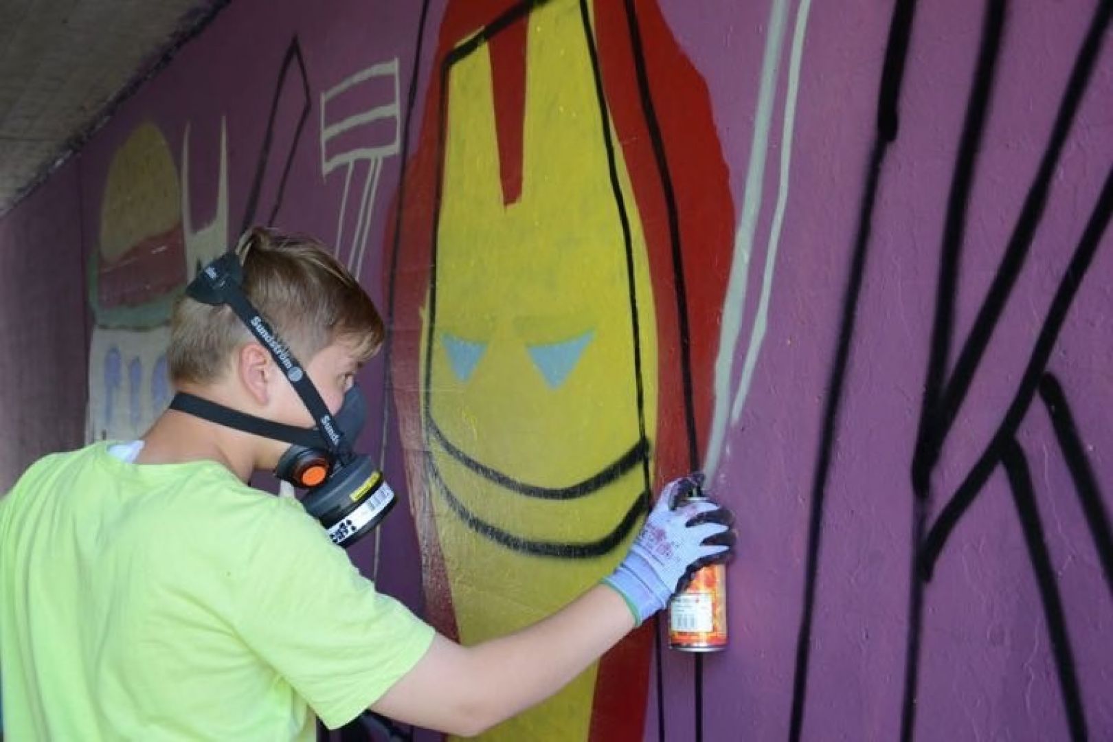 Bei dem Workshop haben die neun Teilnehmer an diesem Wochenende – Samstag und Sonntag jeweils von 10 bis 17 Uhr – jede Menge gelernt. Dill legt dabei stets Wert darauf, dass ein Konzept verfolgt und nicht einfach drauflos gesprüht wird. So haben die Künstler in spe gestern auch erst einmal Skizzen der Motive entworfen, die sie in Angriff nehmen wollten. Dill erklärte zudem den Umgang mit den Dosen, die Grundtechniken des Sprühens und Hintergründe zur Graffiti-Kultur. Außerdem mussten die Wände vorbereitet werden, sprich: gereinigt und grundiert. „Wir machen es so, wie man es eben normal auch macht“, erklärte Dill im Gespräch mit unserer Zeitung.