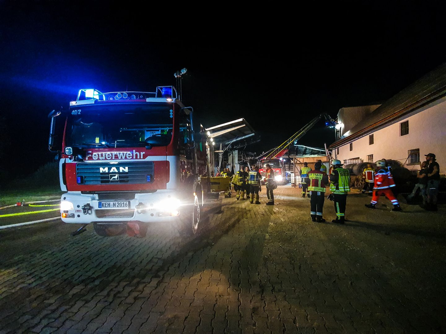 (ty) Immenser Sachschaden ist am gestrigen Abend beim Brand einer landwirtschaftlichen Halle in Elsendorf (Landkreis Kelheim) entstanden. In einer ersten Mitteilung aus dem niederbayerischen Polizeipräsidium wurde er in einer Größenordnung von ungefähr 750 000 Euro angesiedelt. Verletzt worden sei zum Glück niemand. Als Ursache für die Feuersbrunst wird nach bisherigen Erkenntnissen ein technischer Defekt vermutet.