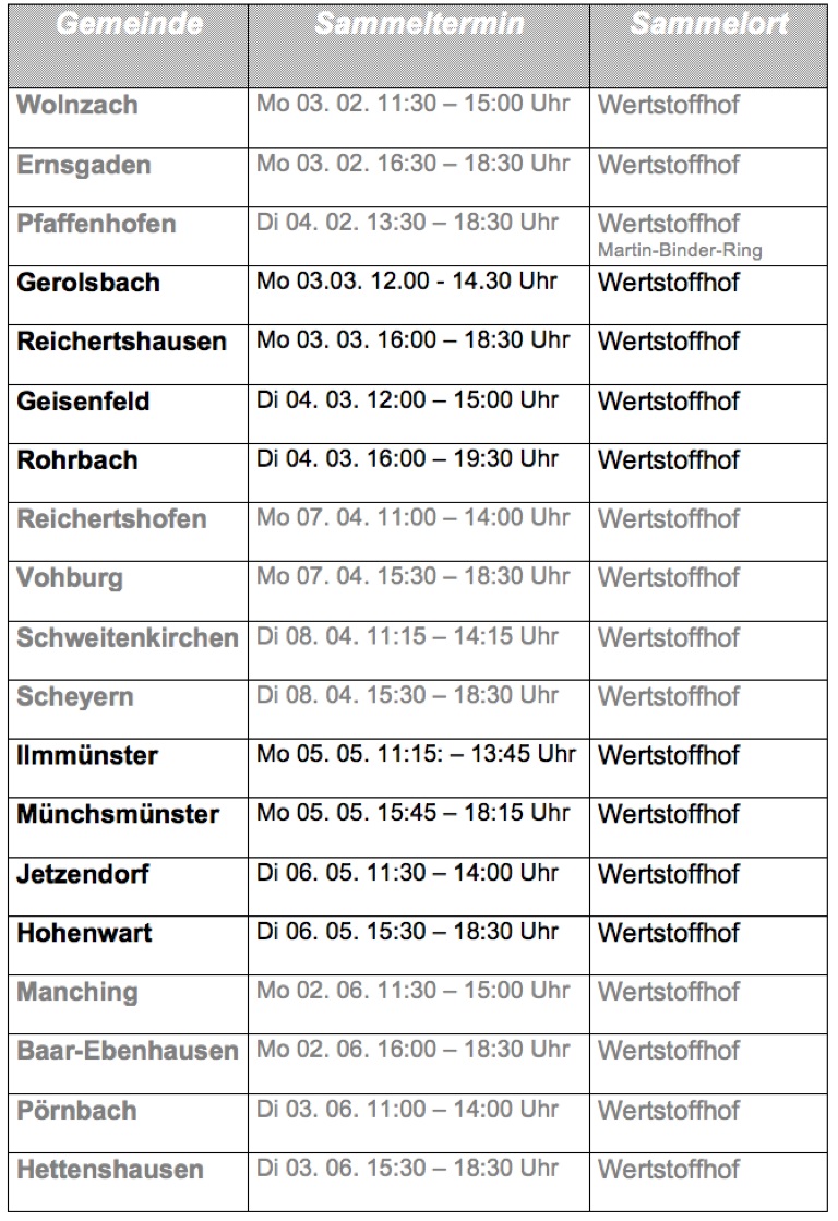 Hier die Problemabfall-Sammeltermine für das erste Halbjahr: