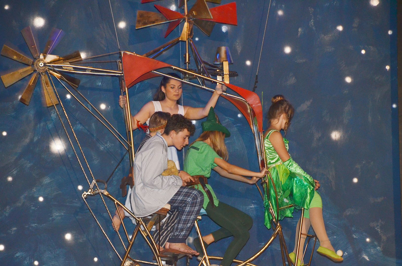 Die Schauspieler im Alter zwischen sieben und 24 Jahren verkörperten ihre Rollen geradezu perfekt und auch authentisch. Die gespielte Geschichte: Für Wendy, Linda und Sally wird ein Traum wahr: Zusammen mit Peter Pan erleben sie Abenteuer um Abenteuer, nachdem ihnen die Fee Tinkerbell Flugstaub über ihre Köpfe gestreut hat. Sie haben so die Möglichkeit erhalten, miteinander die Erde in Richtung Nimmerland zu verlassen. Tanzende Indianer finden sich ebenso auf ihrem Weg wie der böse und gefürchtete Captain Hook. Aus dessen Händen wollen sie die entführte Indianertochter Tigerlily befreien.