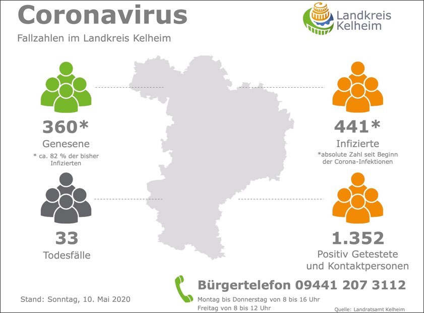 Bislang gibt es hier 441 bestätigte Corona-Infektionen, 360 Betroffene gelten als genesen, 33 Todesfälle. Bürger-Telefon dieses Wochenende nicht erreichbar.