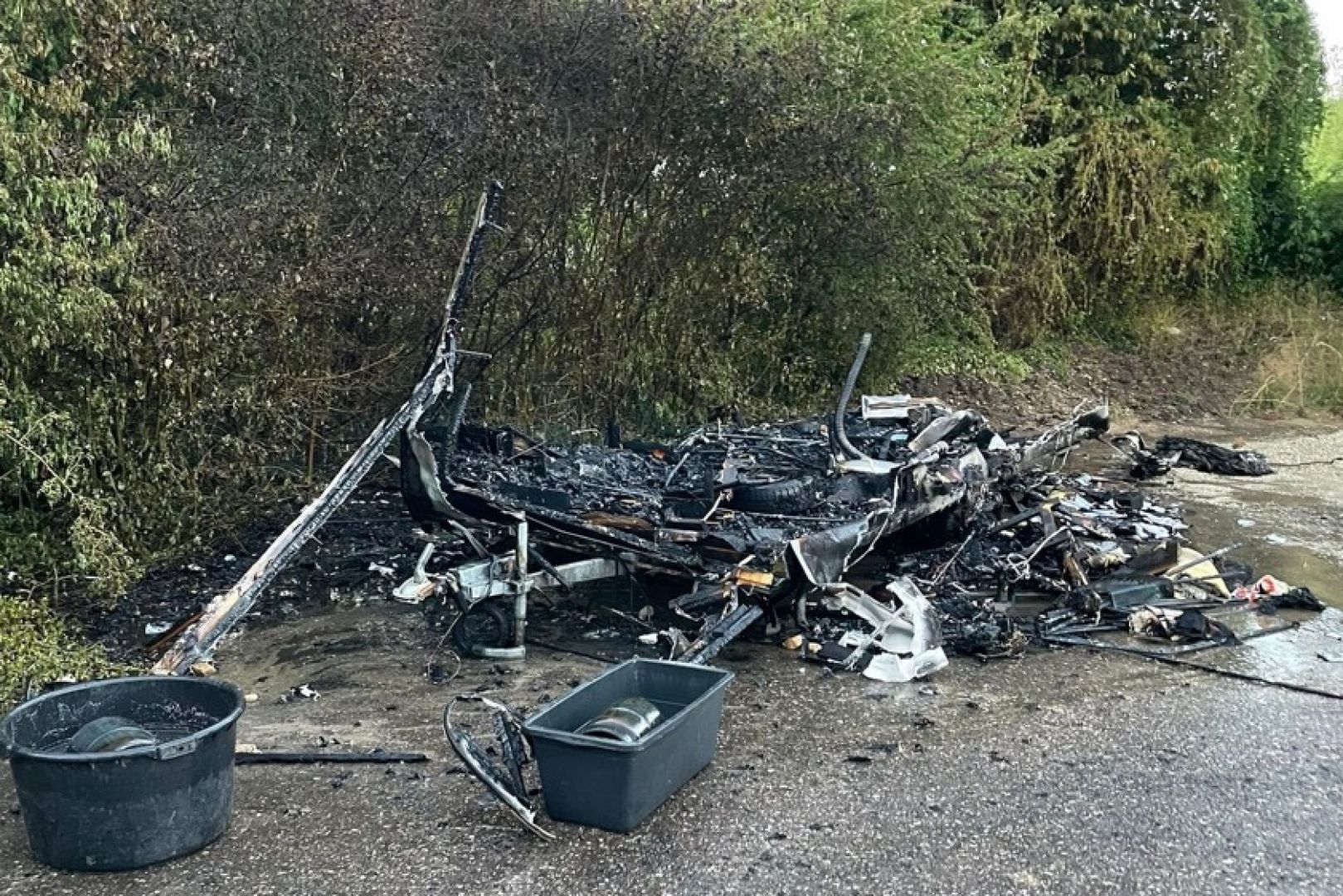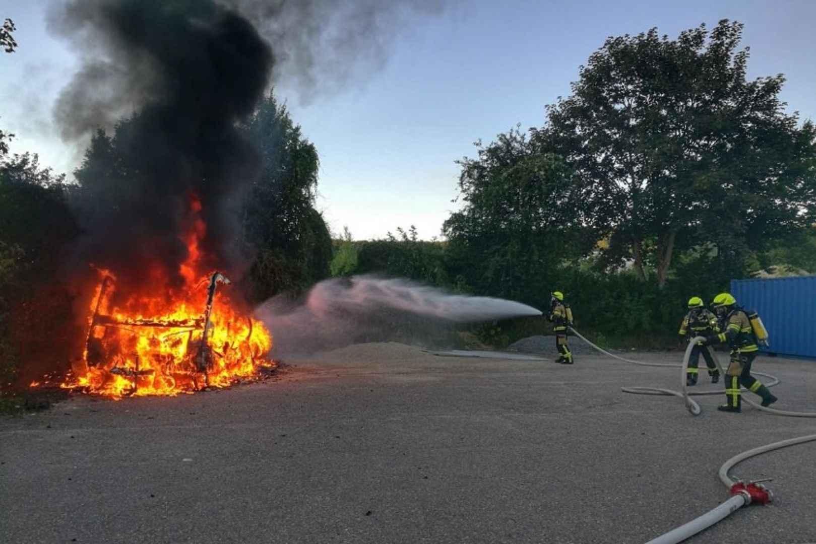 Als die Kelheimer Feuerwehr anrückte, stand der Anhänger bereits im Vollbrand. Wurde der Brand vorsätzlich gelegt?