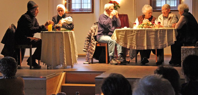 (ty) Die Theater-Gruppe des städtischen Senioren-Büros von Pfaffenhofen hat im Ortsteil Tegernbach gastiert. Im Rahmen der Advent-Feier der hiesigen Senioren-Gruppe zeigten die Laien-Schauspieler dabei zwei weihnachtliche Stücke. Eingeladen zu dieser Veranstaltung, die im geschmückten Pfarrsaal des Bildungshauses stattfand, hatte Erna Brückl. Sie ist die Leiterin der Senioren-Gruppe von Tegernbach. (Foto: Senioren-Büro)