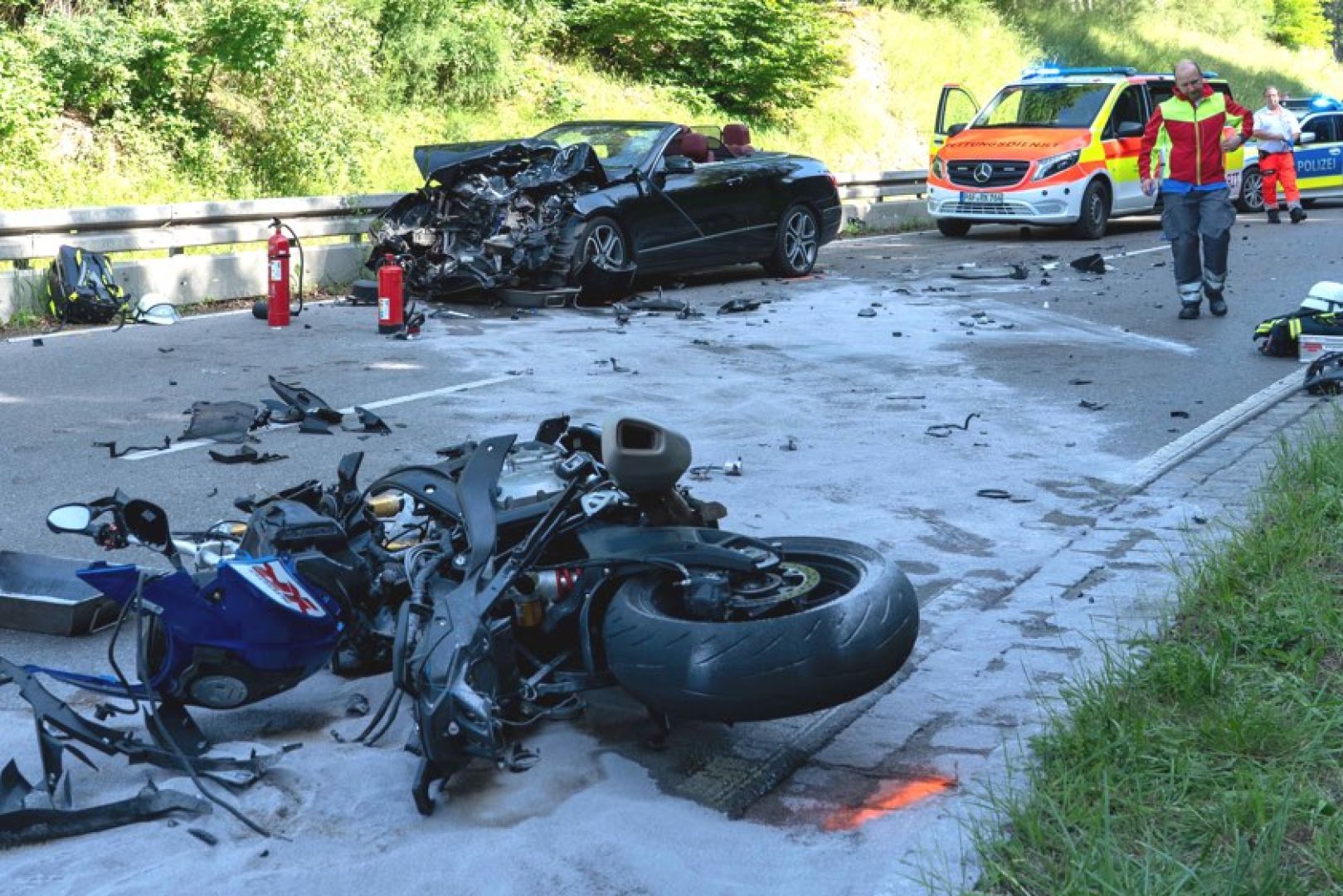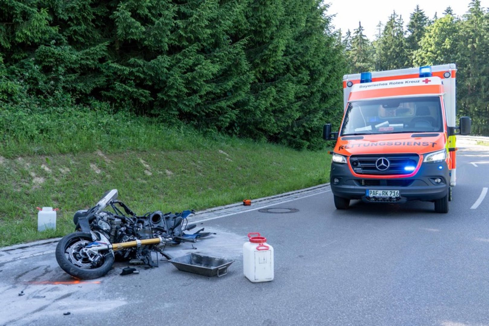 Von der Staatsanwaltschaft sei zur genauen Klärung des Unfall-Hergangs die Erstellung eines analytischen Gutachtens angeordnet worden. Die Kreisstraße sei in diesem Bereich rund 4,5 Stunden lang komplett gesperrt für den Verkehr gesperrt gewesen. Im Einsatz gewesen seien die Feuerwehren aus Tegernbach und Ehrenberg, zwei Rettungswagen, ein Rettungs-Hubschrauber, ein Notarzt sowie Streifenbeamte von der Polizei-Dienststelle aus Pfaffenhofen. An dem Motorrad und an dem Pkw sei ein Totalschaden entstanden. Die polizeilichen Ermittlungen zum genauen Unfall-Hergang dauern.